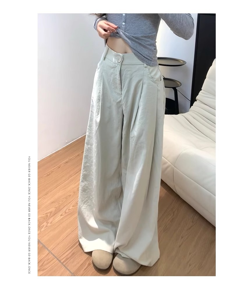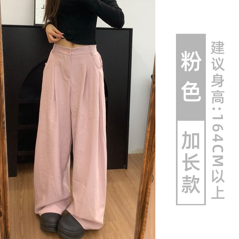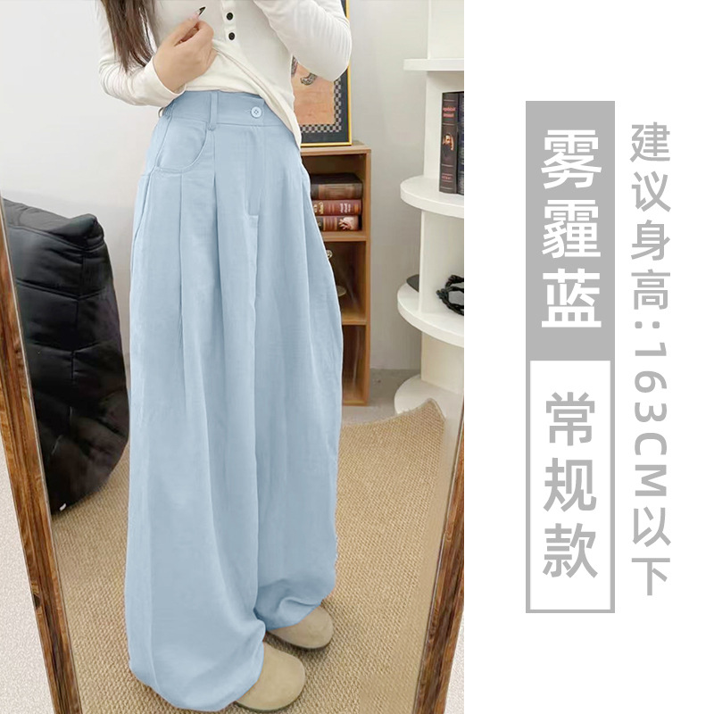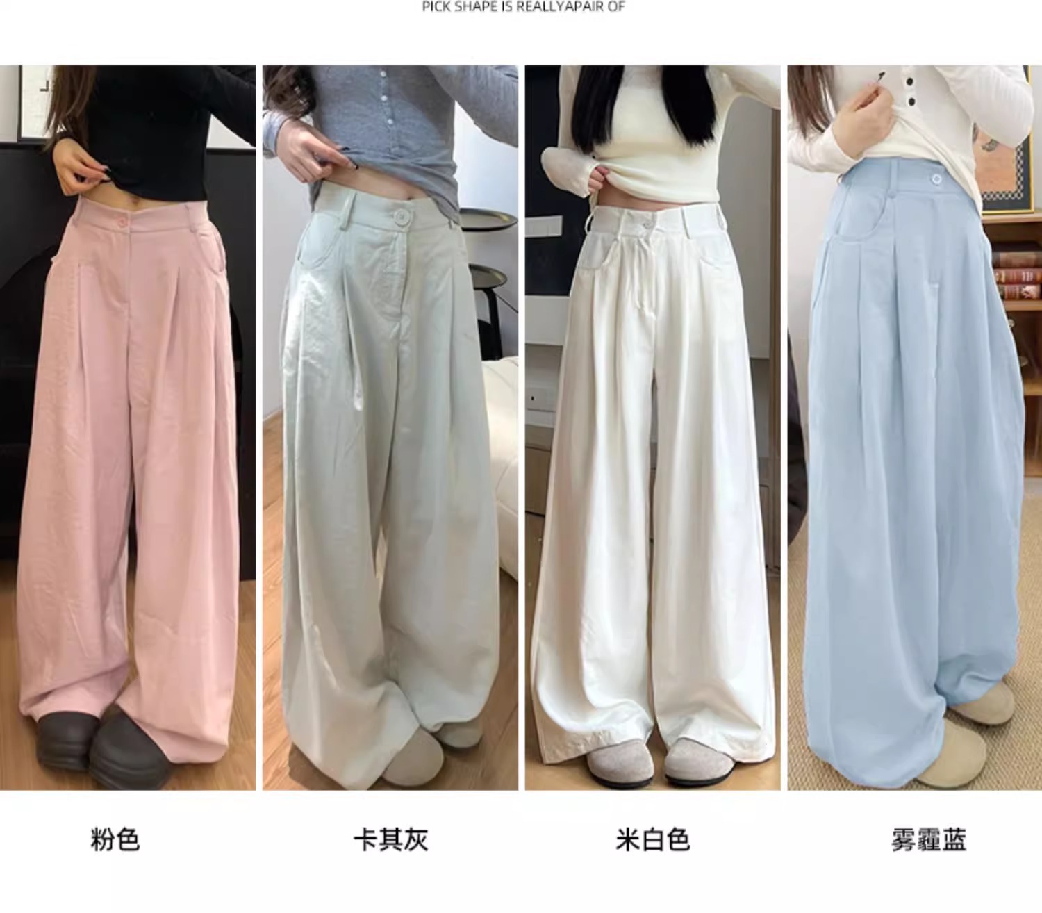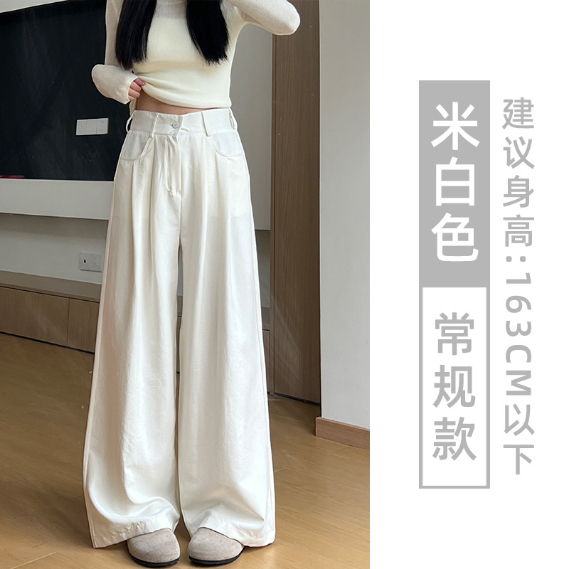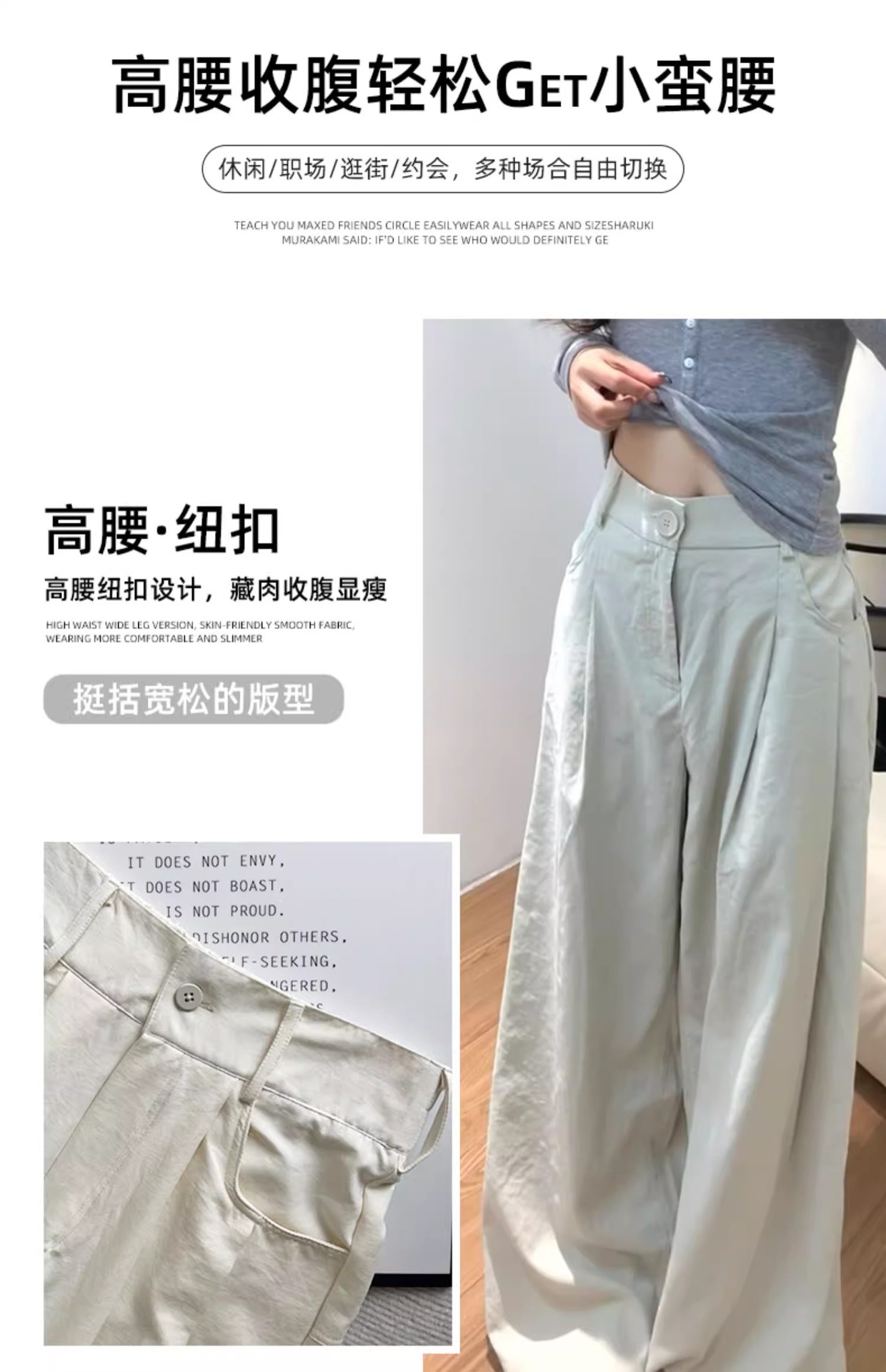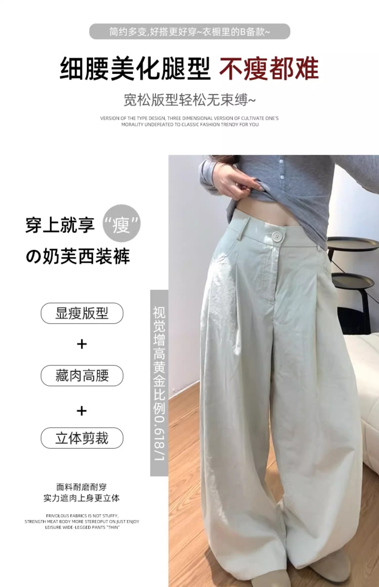 밀크 푸 세트 넓은 다리 바지 여성 2025 봄 새로운 높은 허리 슬리밍 느슨한 얼음 실크 게으른 스타일 바지 여름스토어 가기
