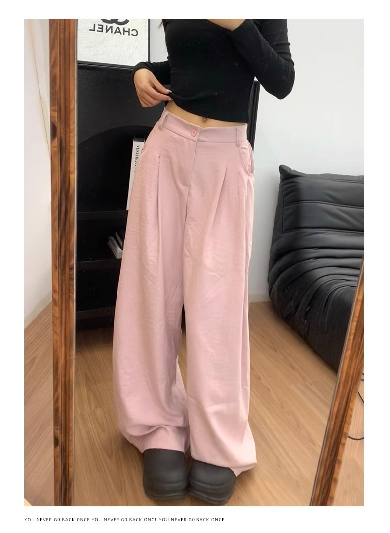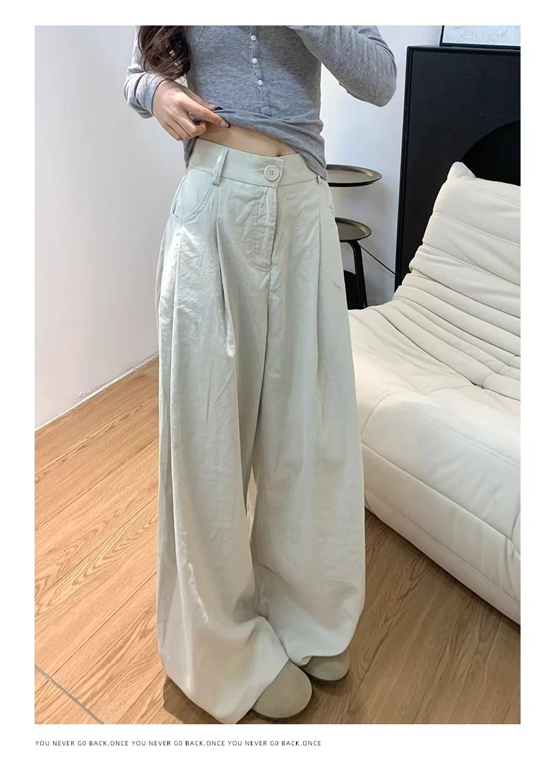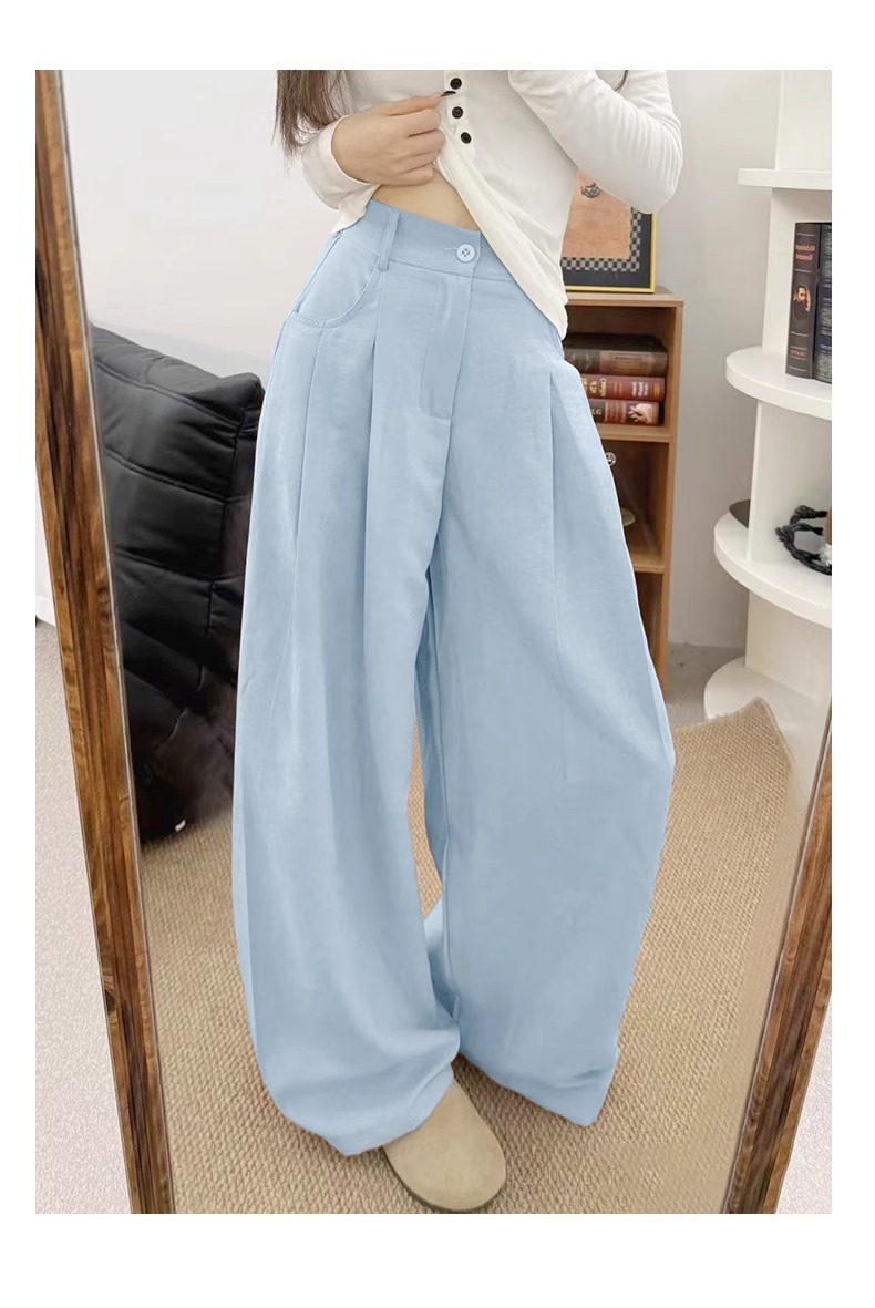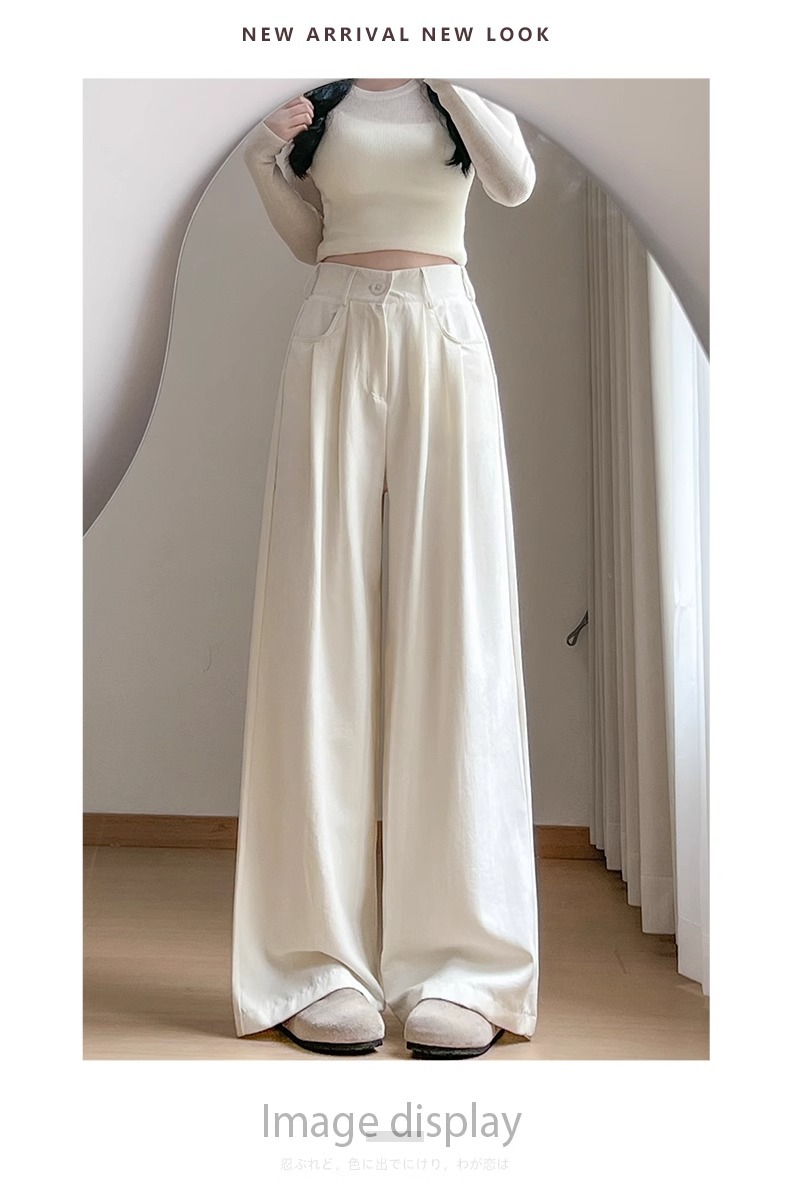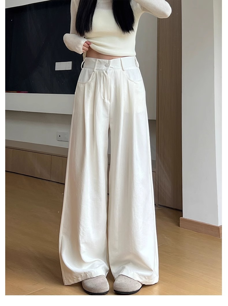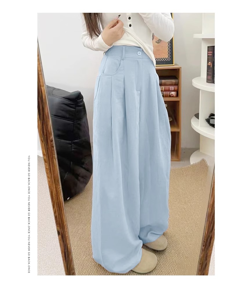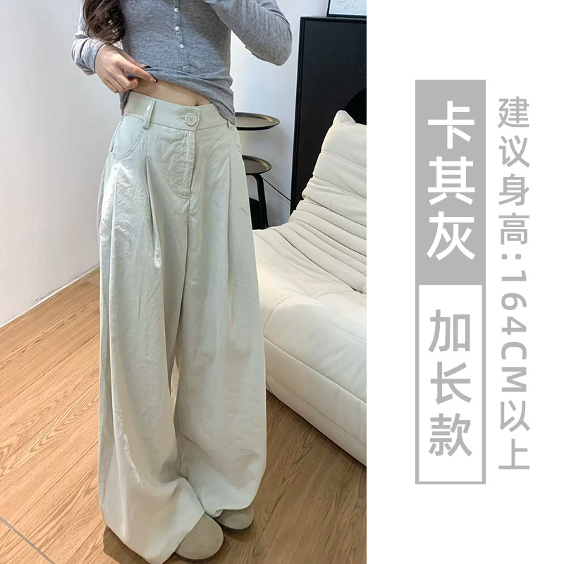 밀크 푸 세트 넓은 다리 바지 여성 2025 봄 새로운 높은 허리 슬리밍 느슨한 얼음 실크 게으른 스타일 바지 여름스토어 가기