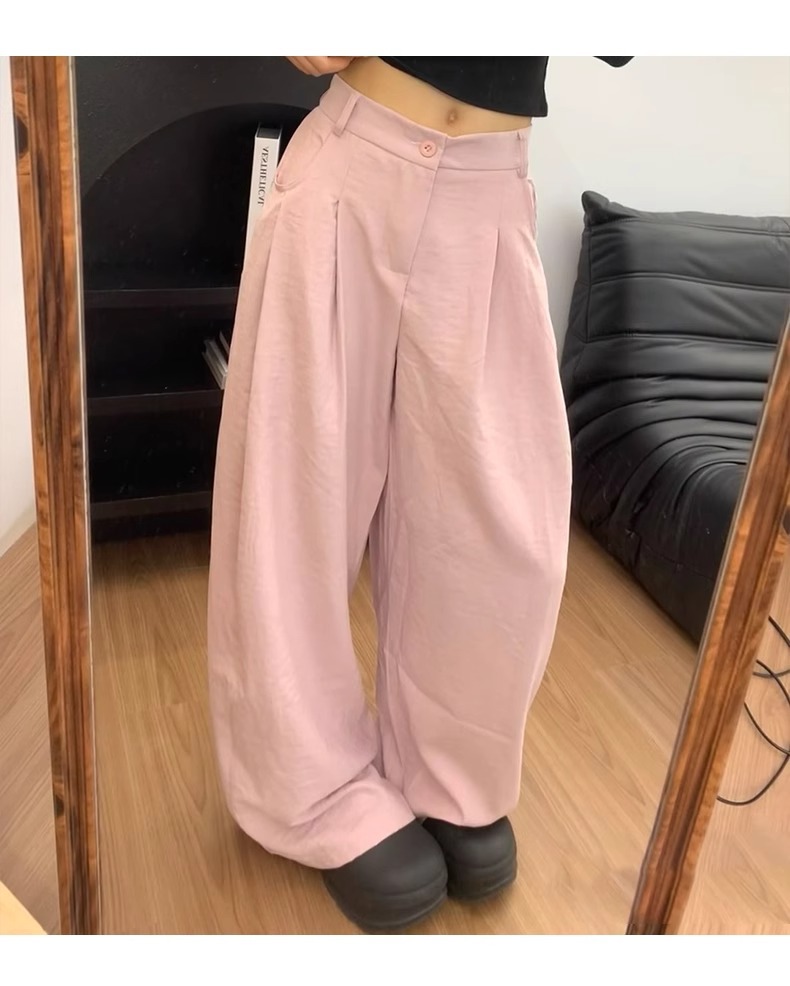 밀크 푸 세트 넓은 다리 바지 여성 2025 봄 새로운 높은 허리 슬리밍 느슨한 얼음 실크 게으른 스타일 바지 여름