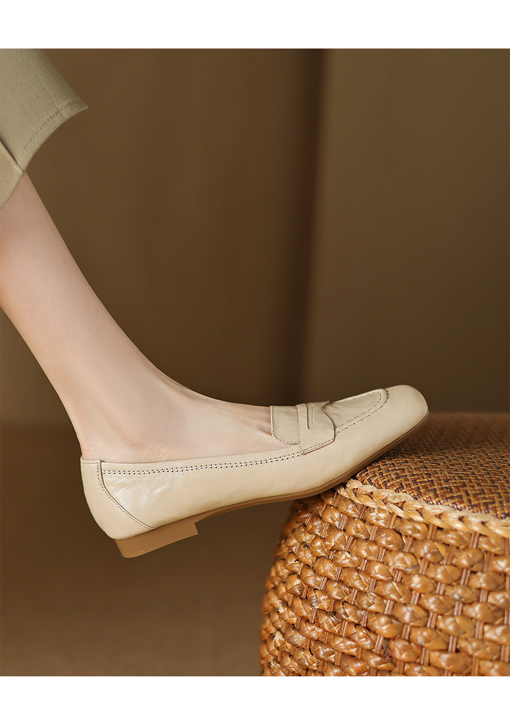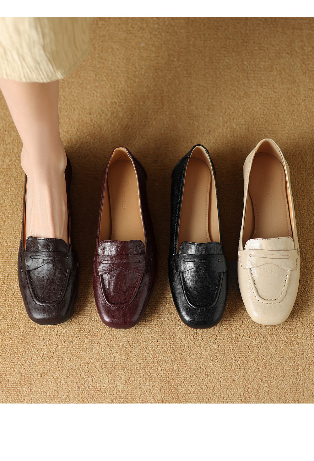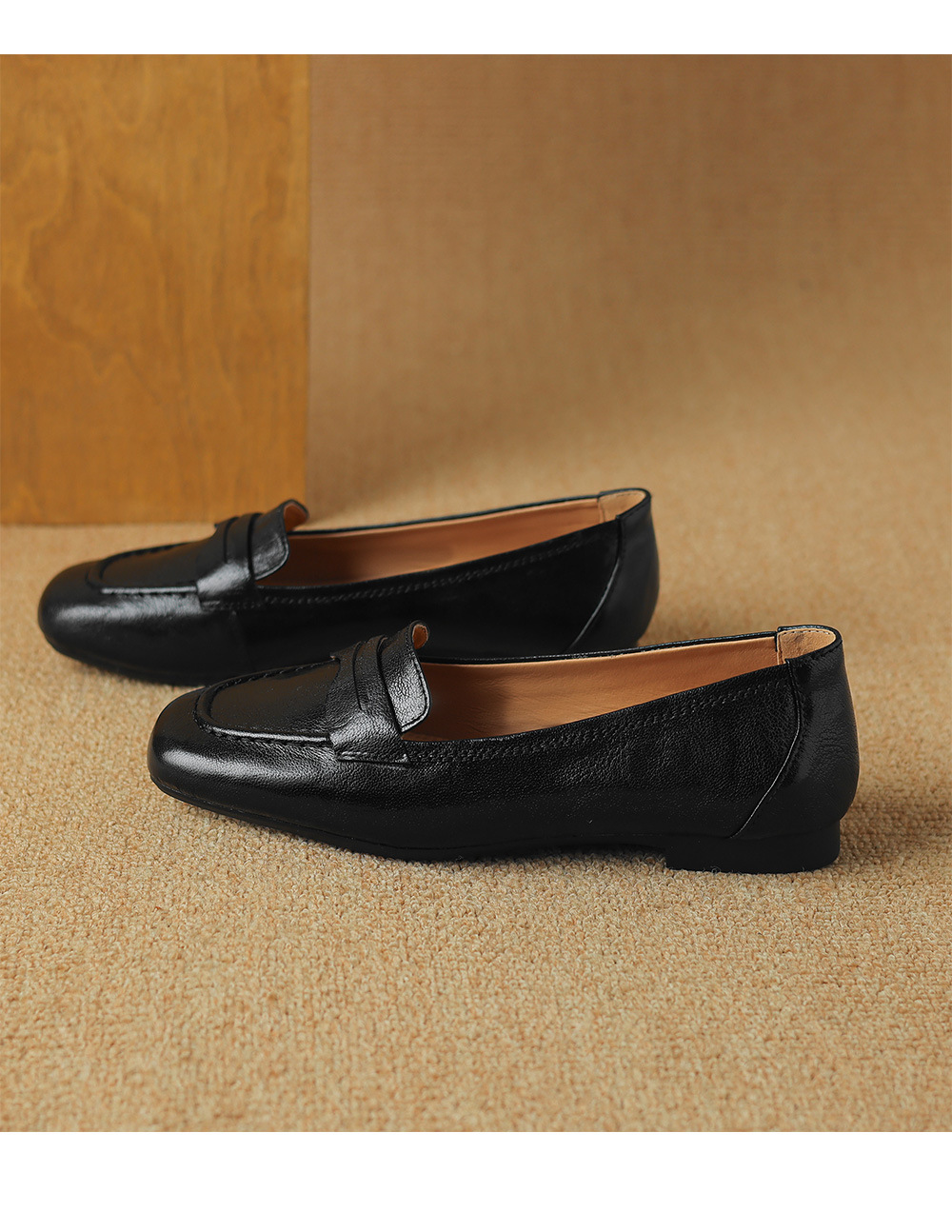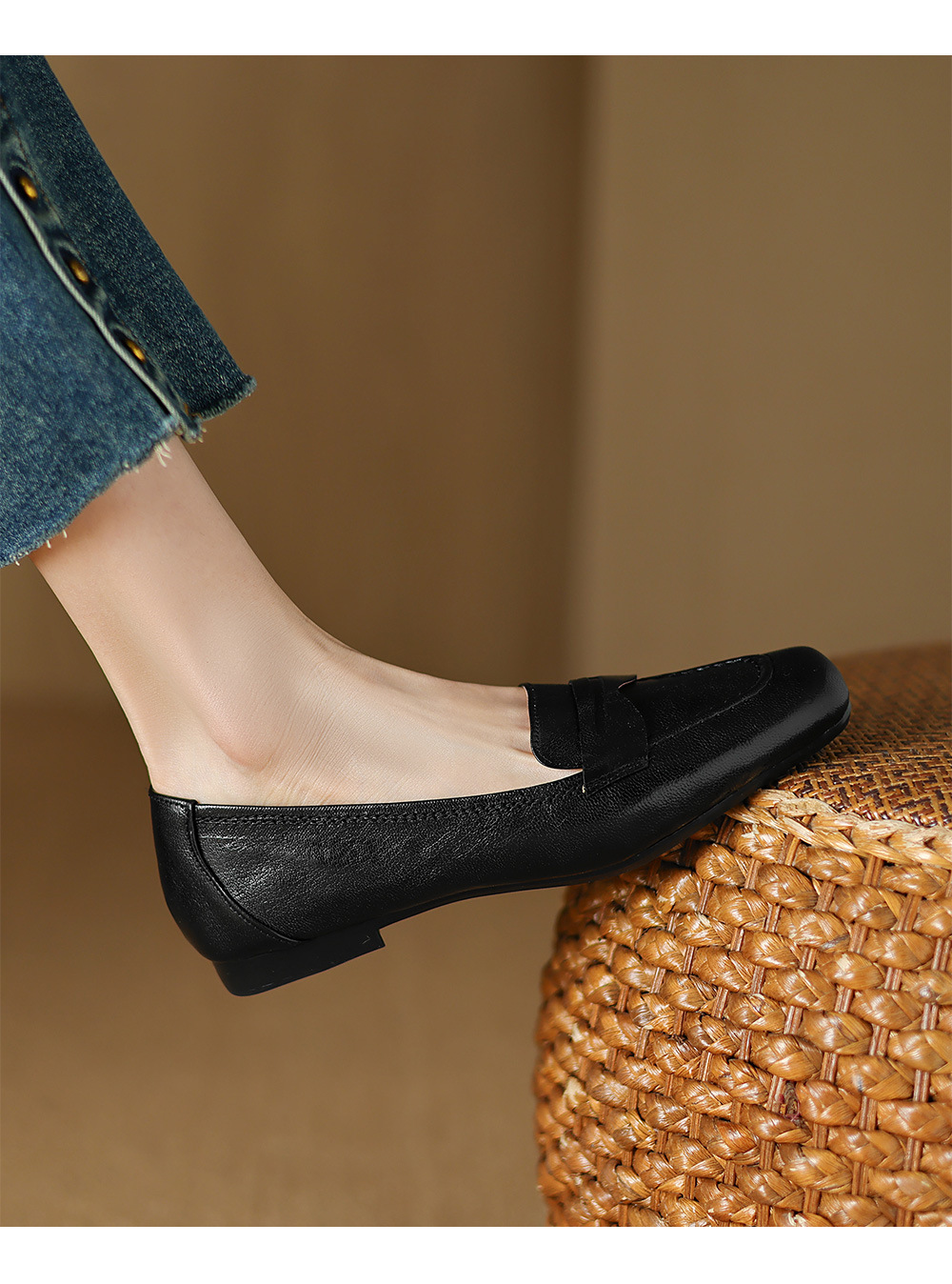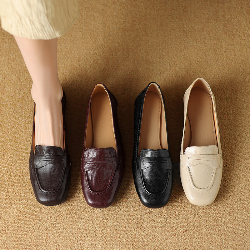 정품 가죽 플랫 로퍼 여성 2025 새로운 봄 여성 신발 낮은 입 낮은 발뒤꿈치 양가죽 봄 여성 싱글 레이어 신발스토어 가기
