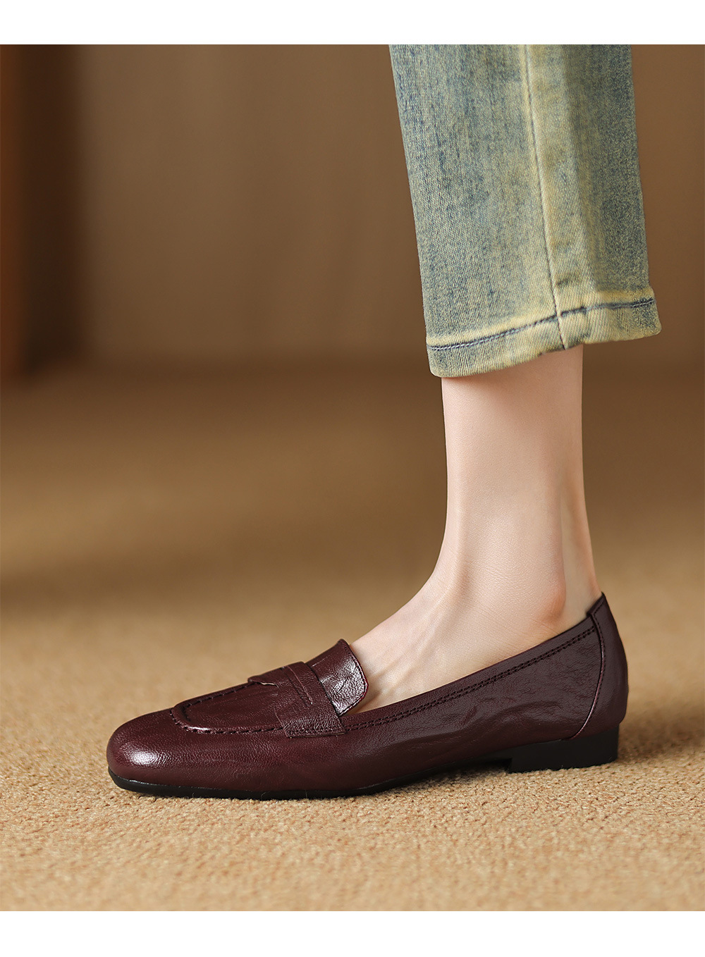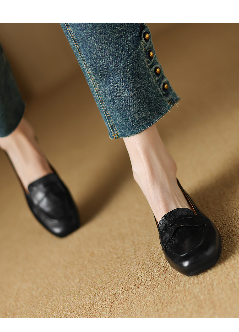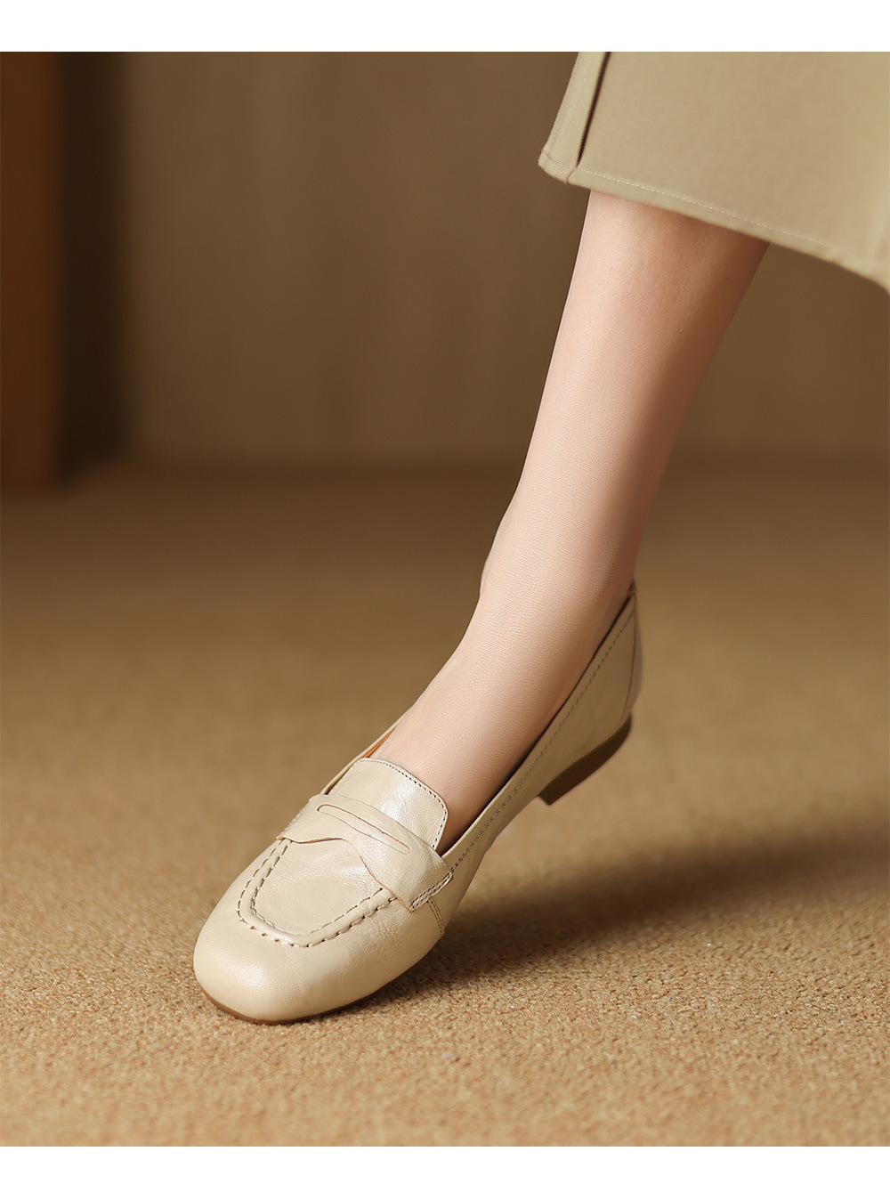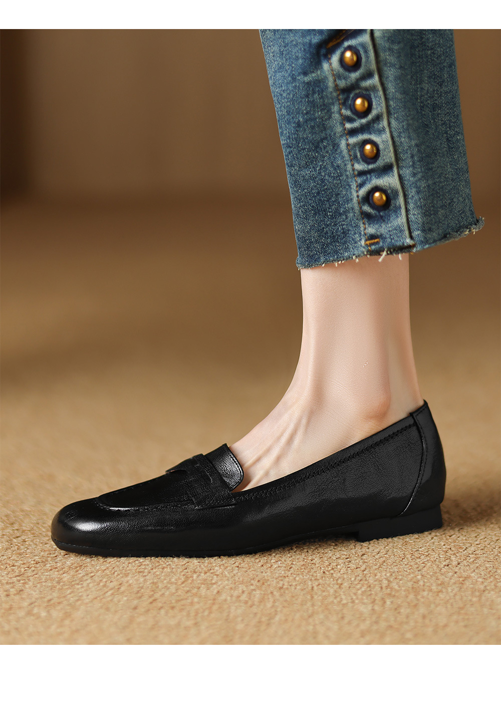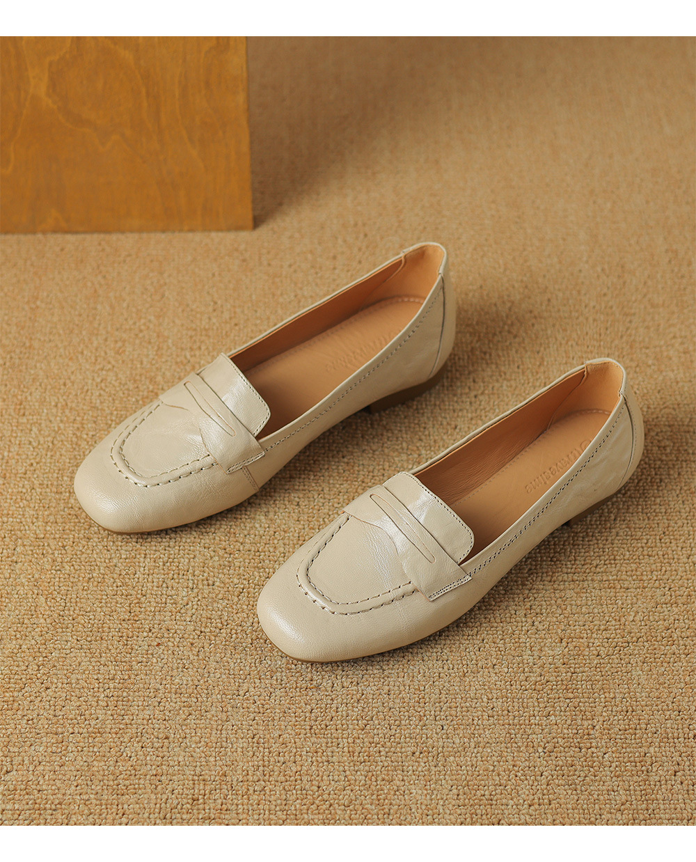 정품 가죽 플랫 로퍼 여성 2025 새로운 봄 여성 신발 낮은 입 낮은 발뒤꿈치 양가죽 봄 여성 싱글 레이어 신발스토어 가기