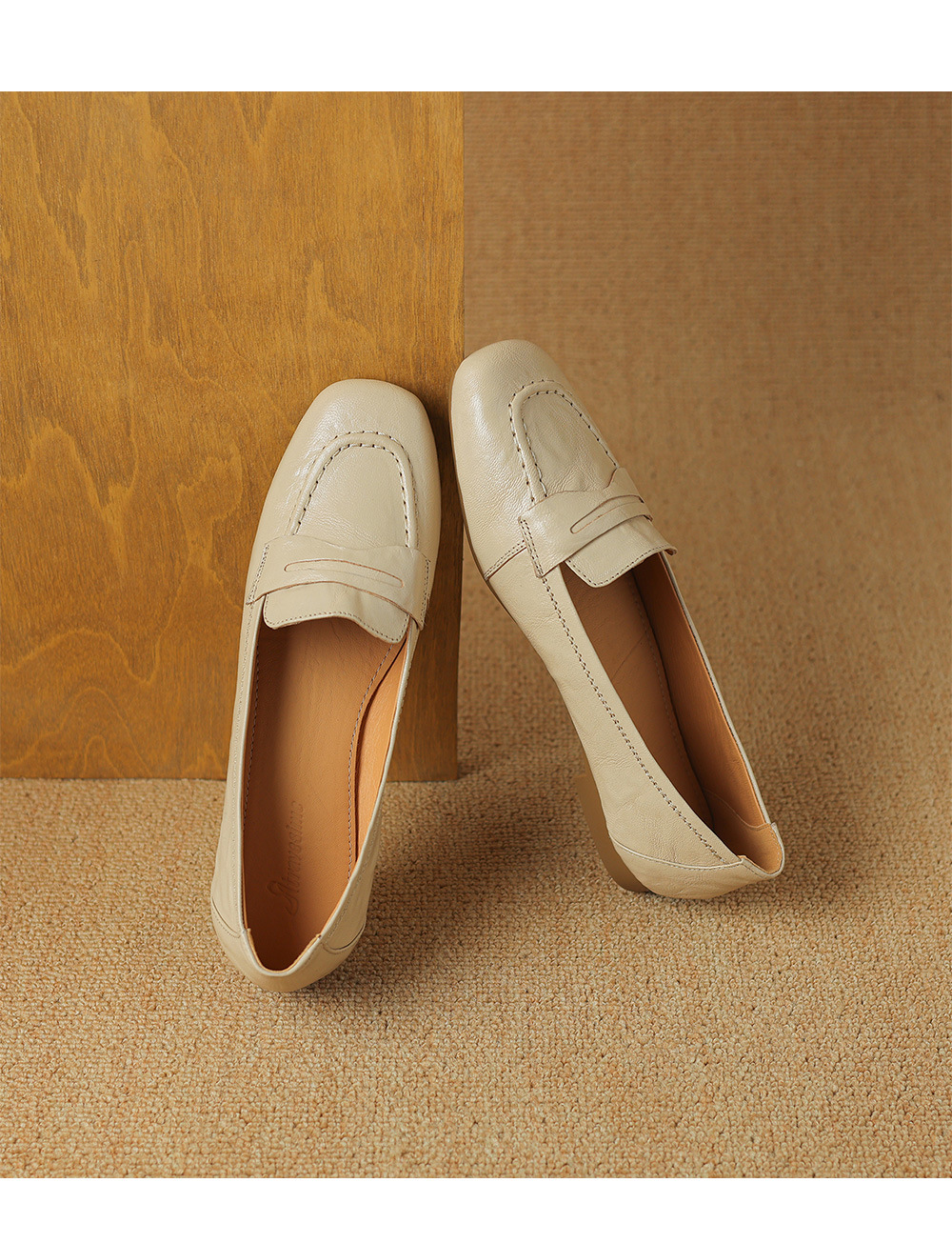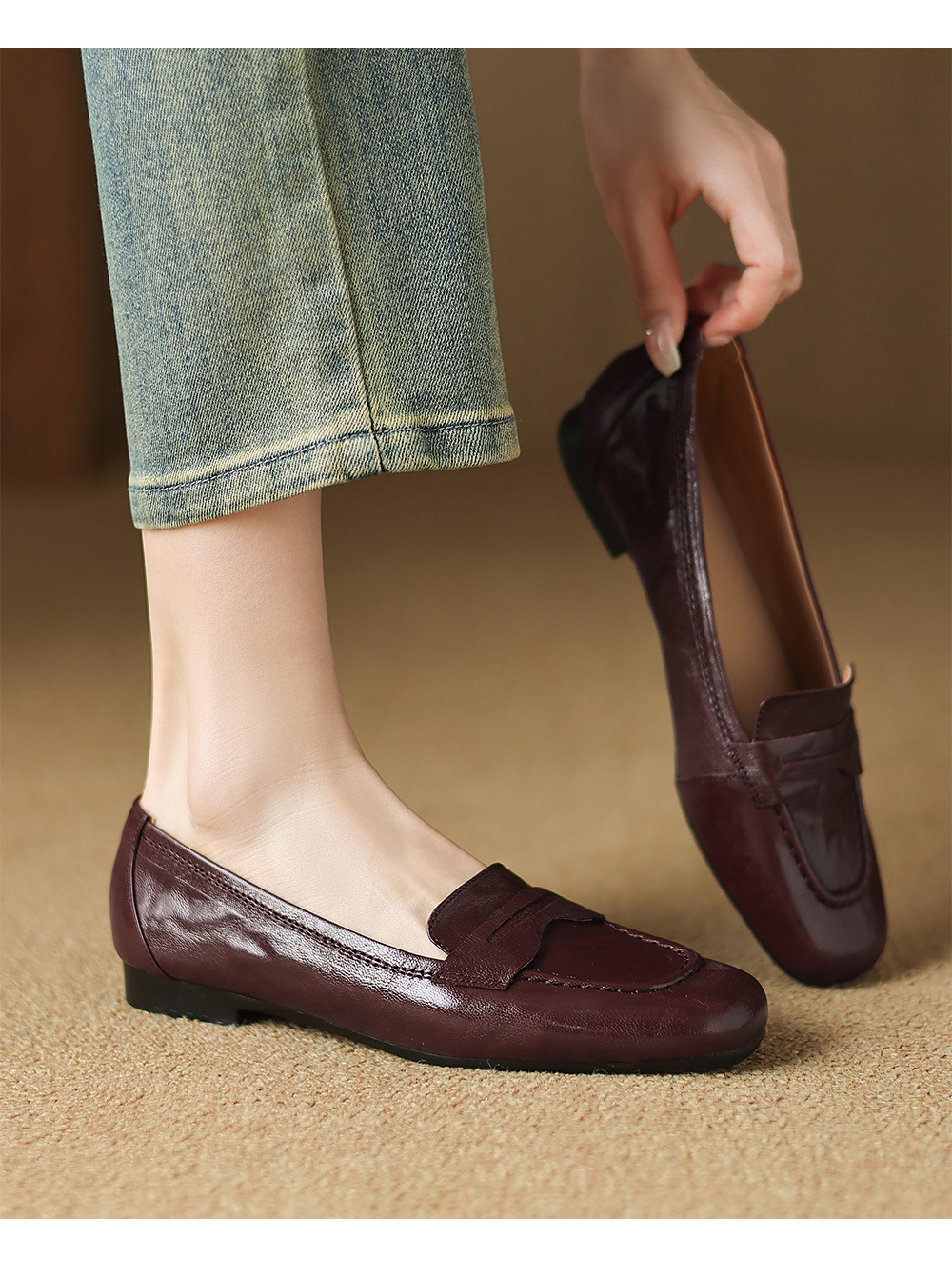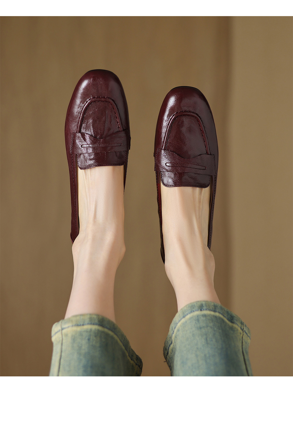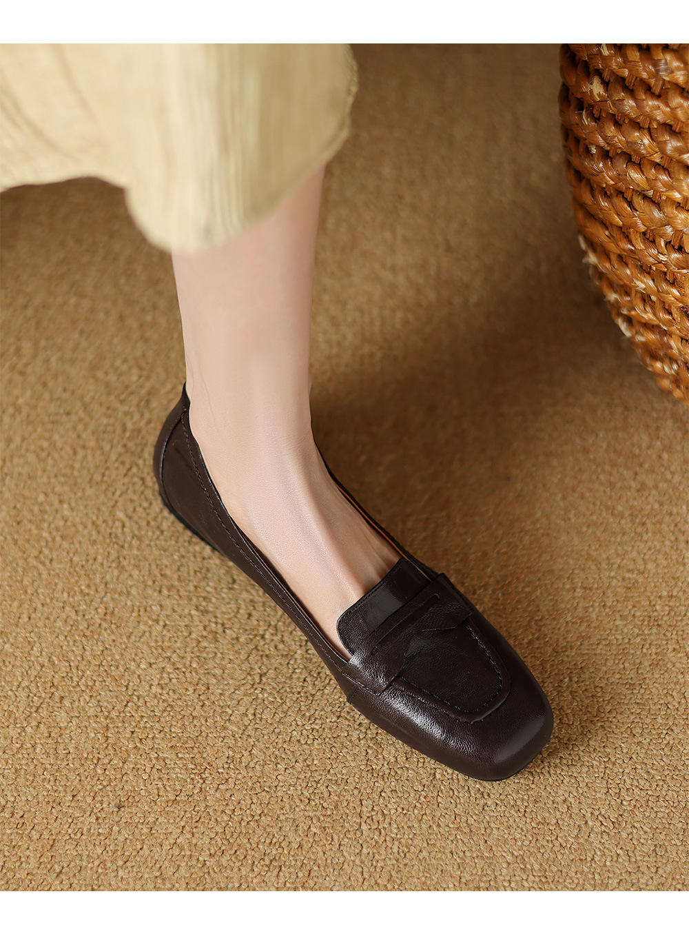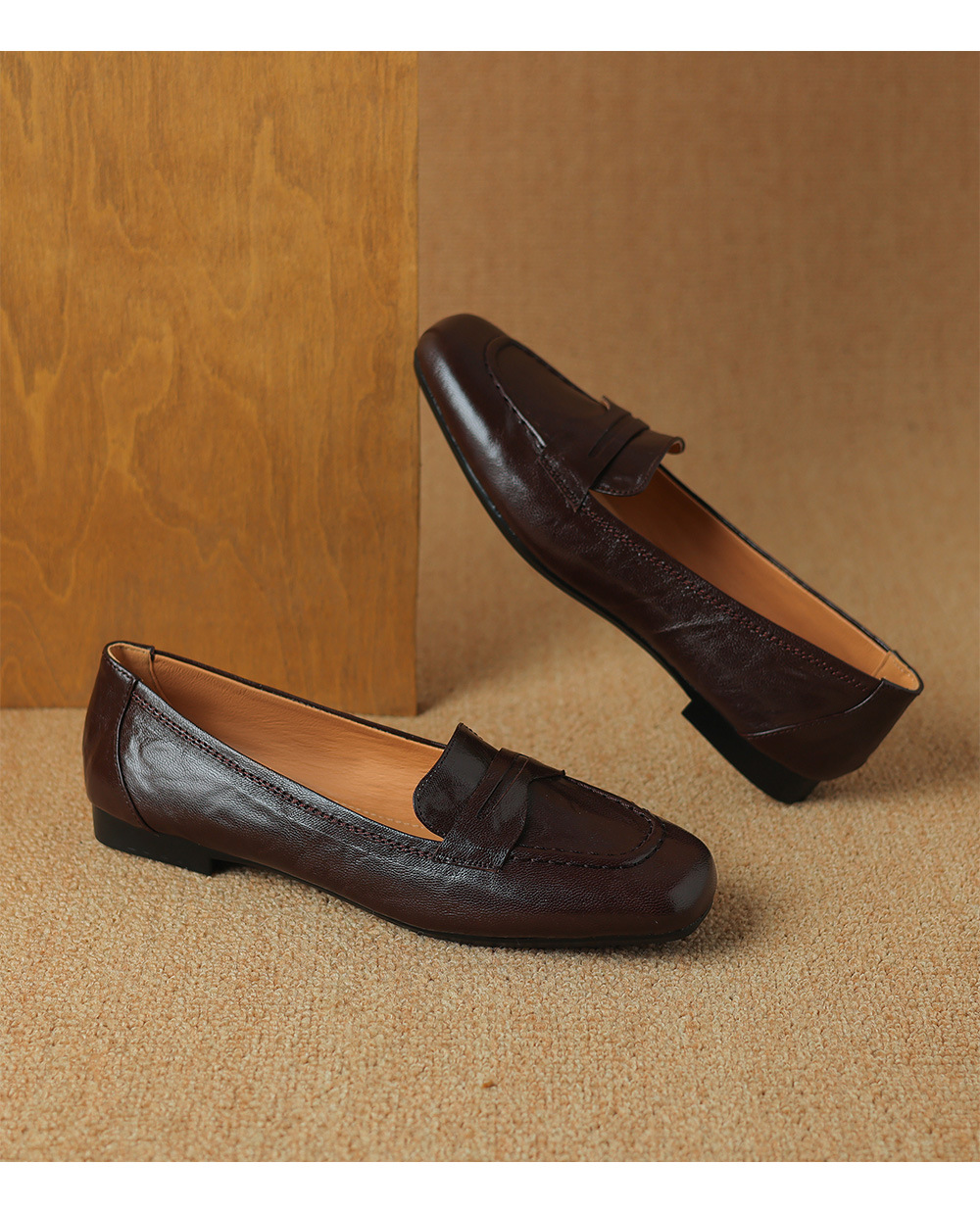 정품 가죽 플랫 로퍼 여성 2025 새로운 봄 여성 신발 낮은 입 낮은 발뒤꿈치 양가죽 봄 여성 싱글 레이어 신발스토어 가기