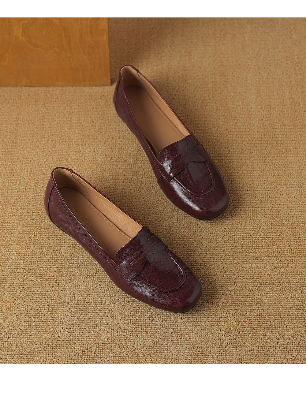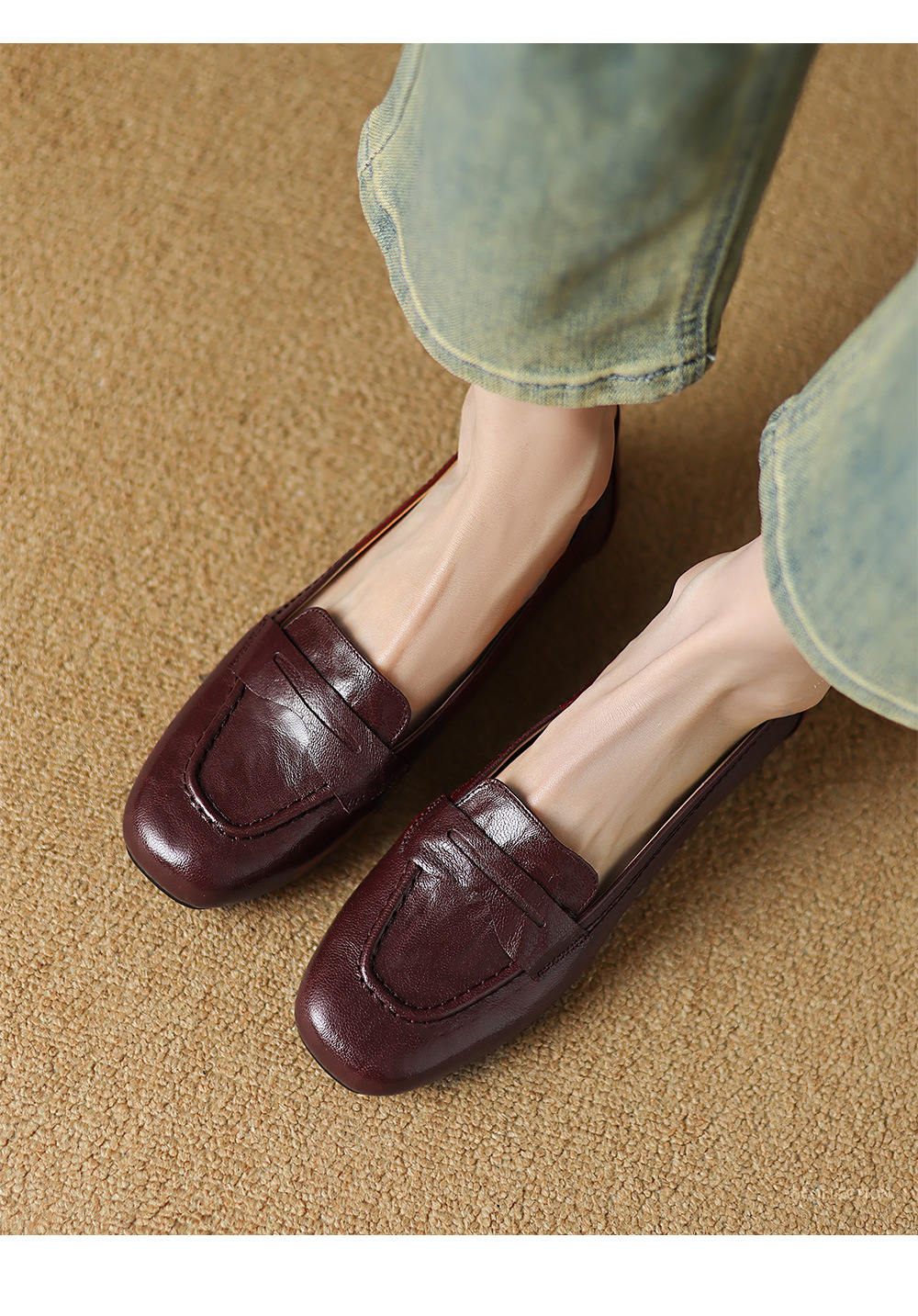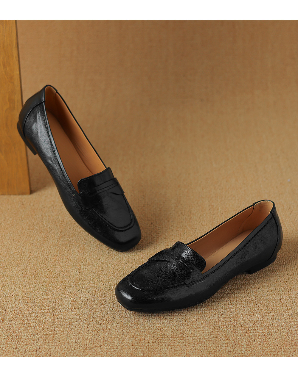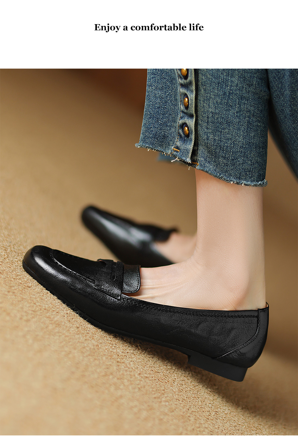 정품 가죽 플랫 로퍼 여성 2025 새로운 봄 여성 신발 낮은 입 낮은 발뒤꿈치 양가죽 봄 여성 싱글 레이어 신발
