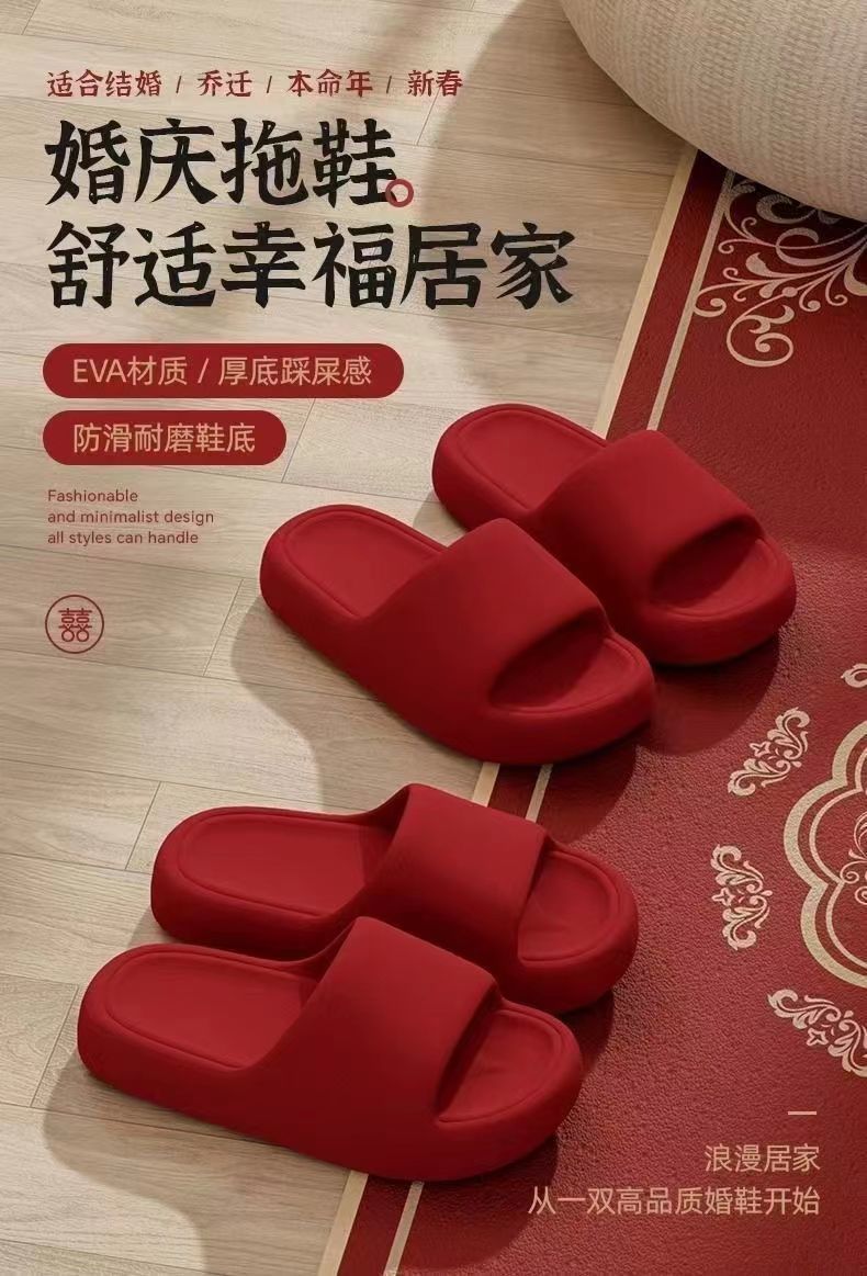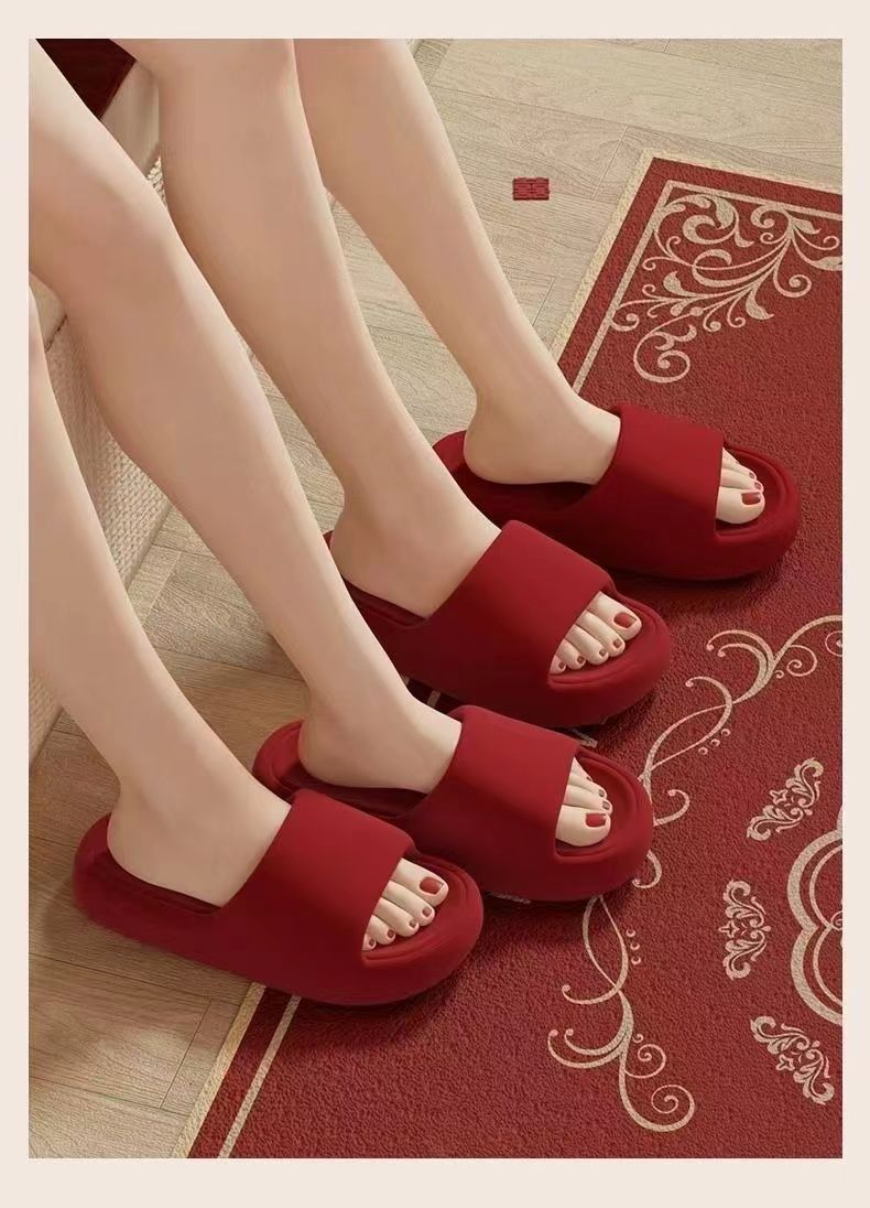 2025 레드 여름 홈 트렌드 대형 사이즈 외출용 두꺼운 밑창 욕실 미끄럼 방지 내구성 커플 슬리퍼 도매스토어 가기