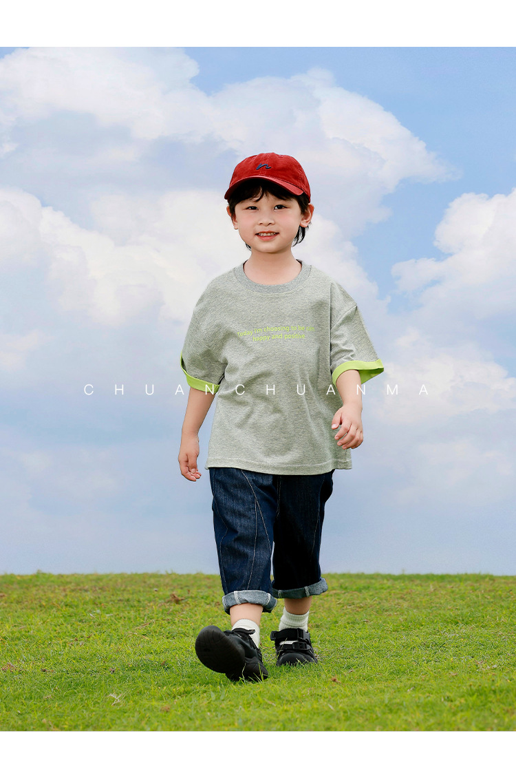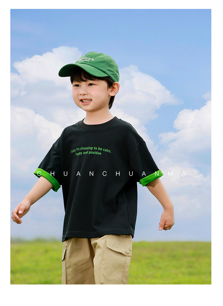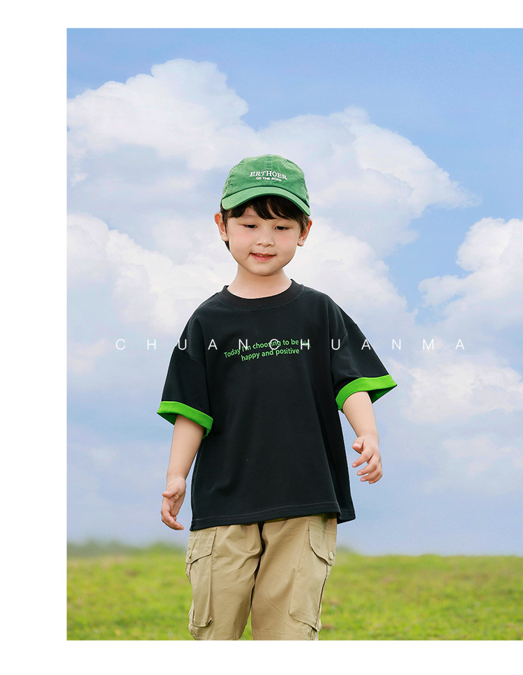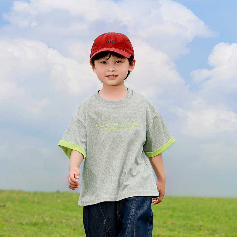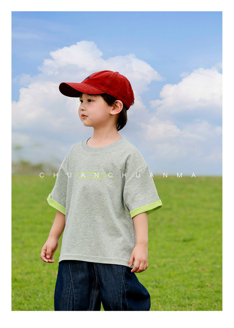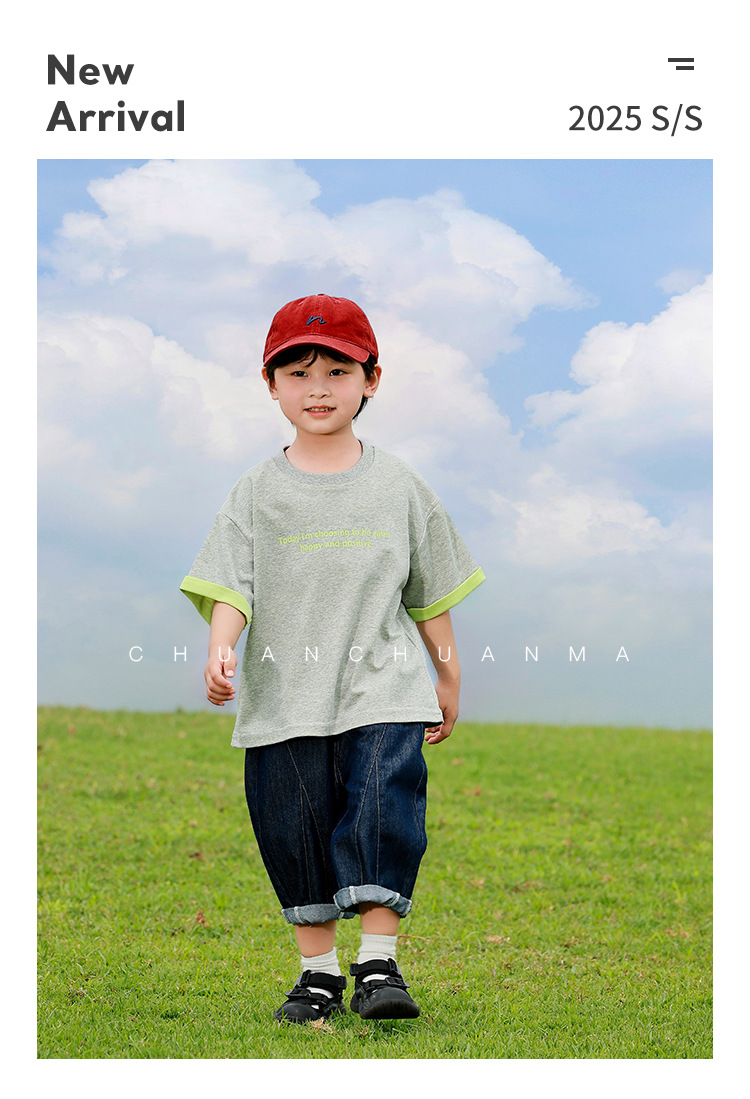 윈드 밸리 2025 여름 새 아동복 한국식 콘트라스트 컬러 AB 티셔츠 남녀용 올 매치 레터 쇼트 슬리브 티셔츠스토어 가기
