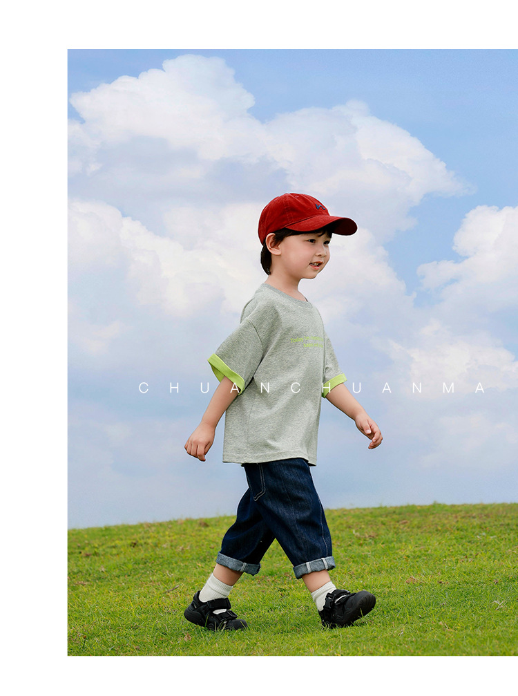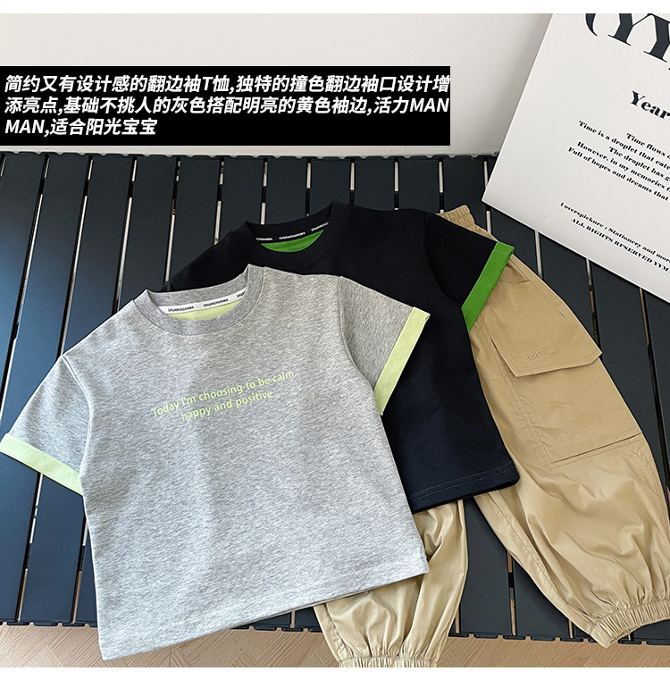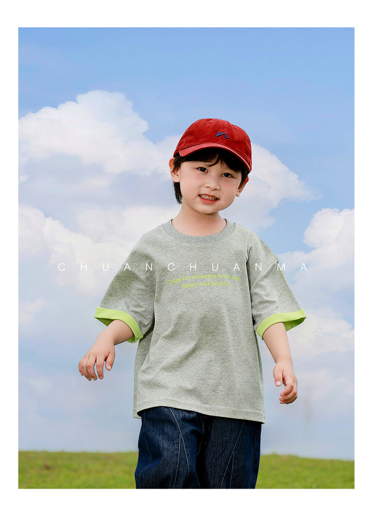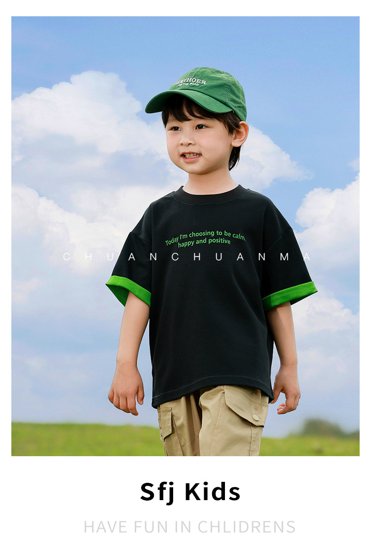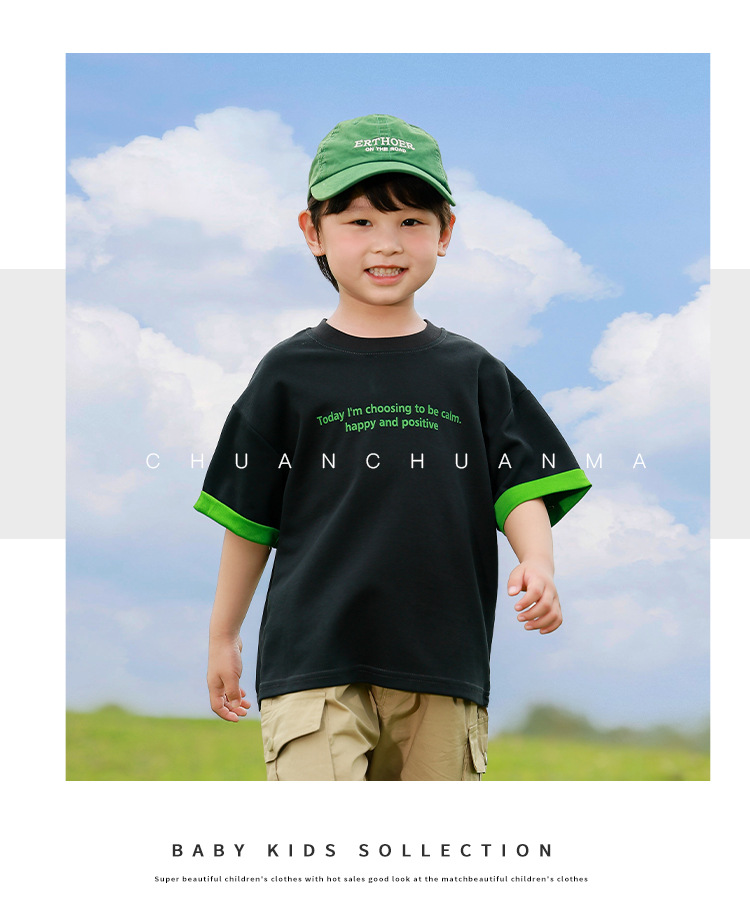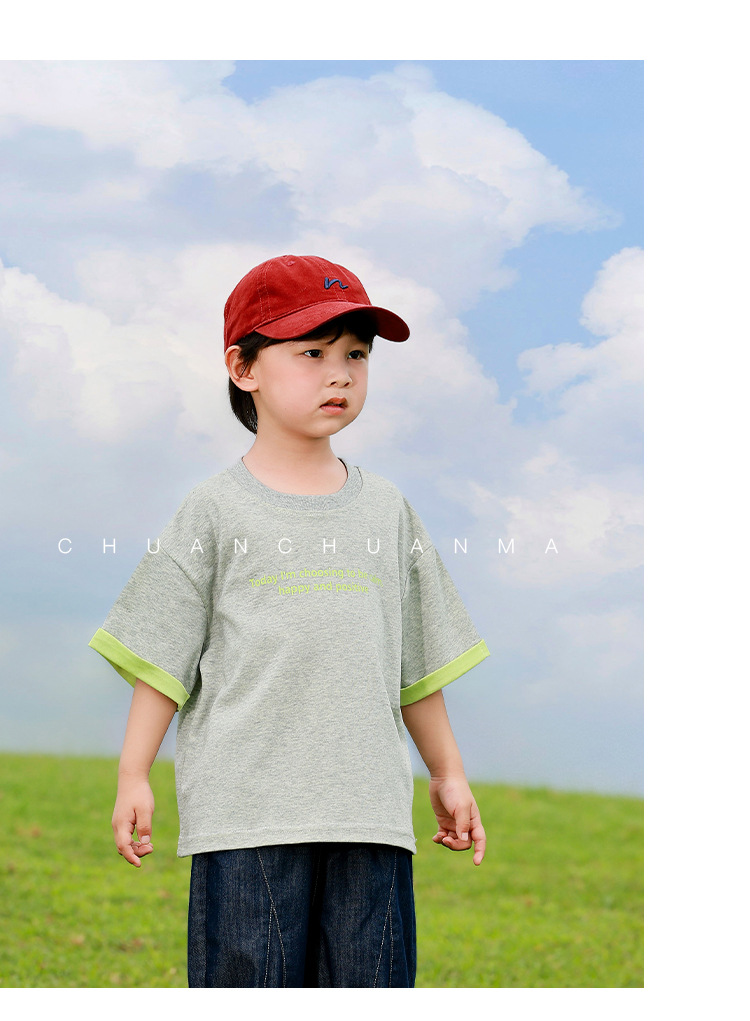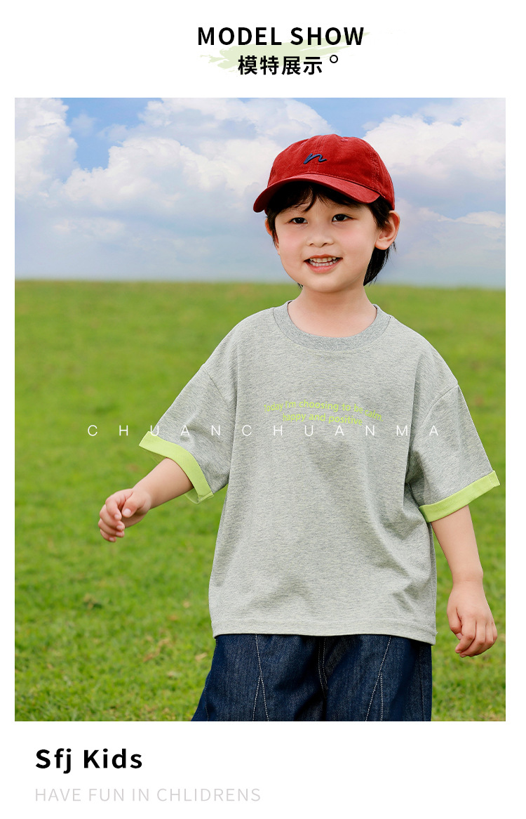 윈드 밸리 2025 여름 새 아동복 한국식 콘트라스트 컬러 AB 티셔츠 남녀용 올 매치 레터 쇼트 슬리브 티셔츠스토어 가기
