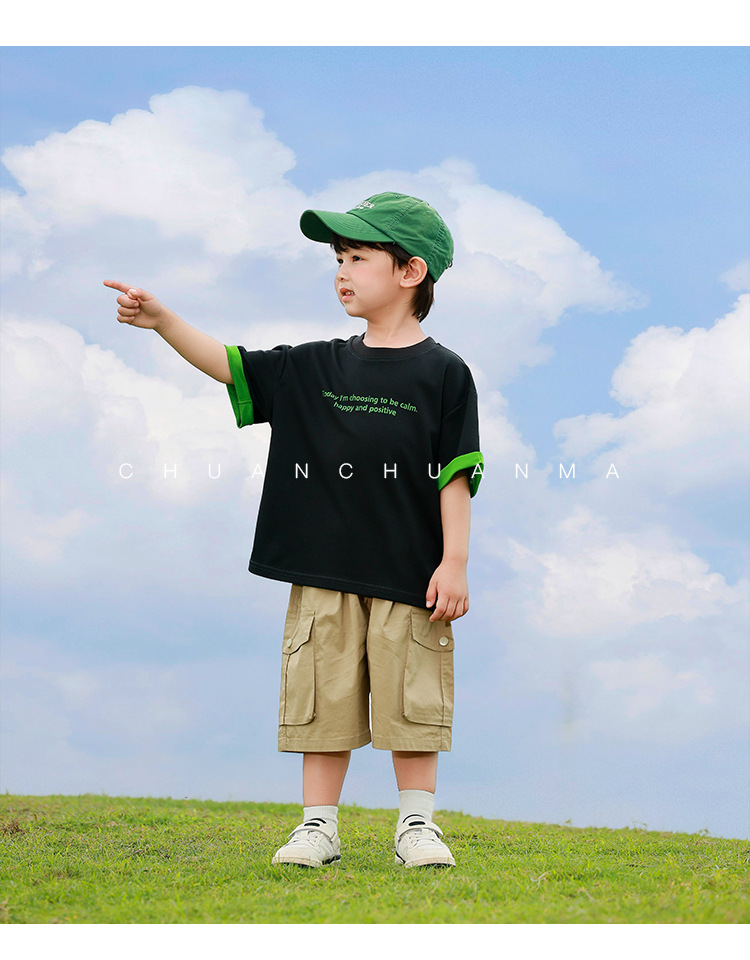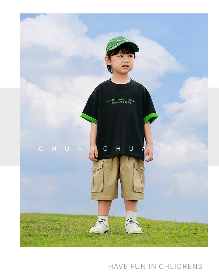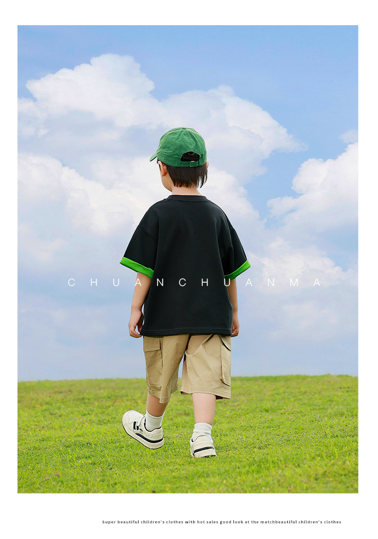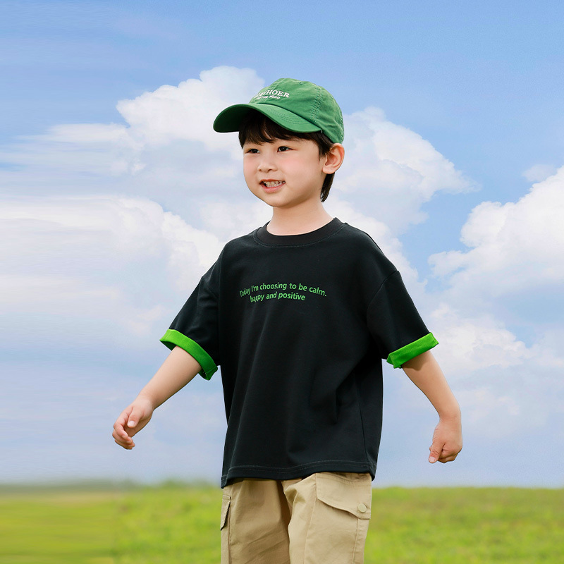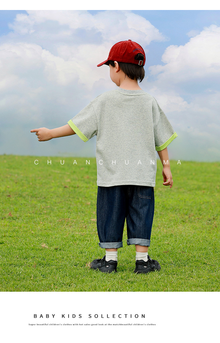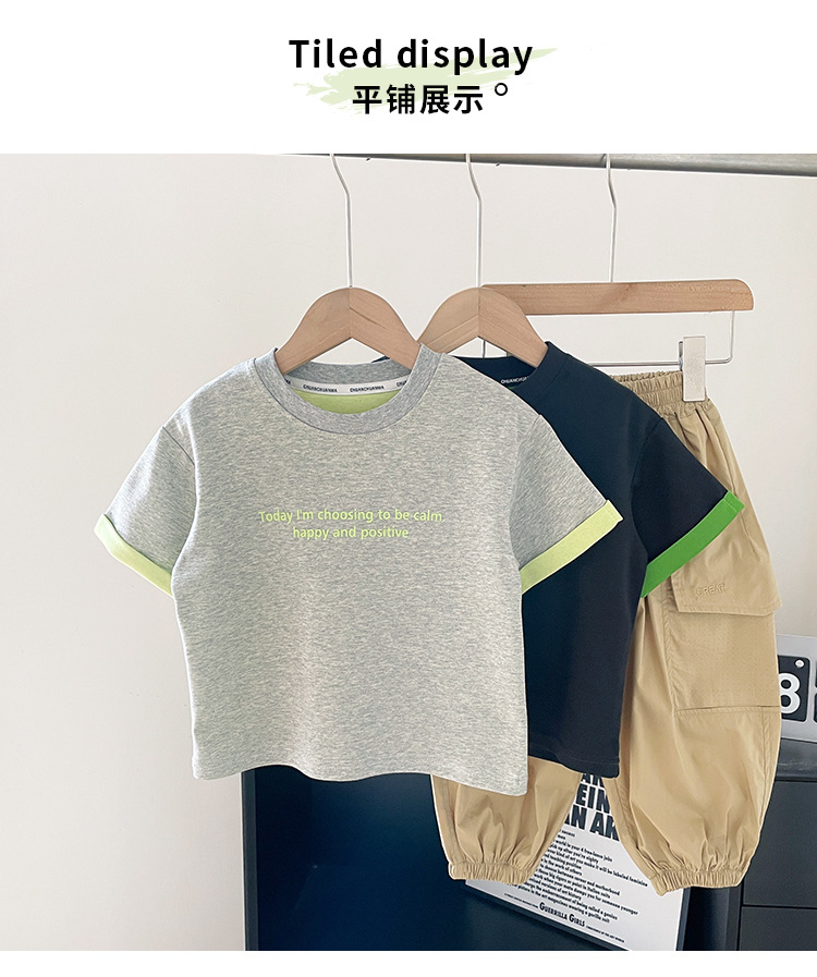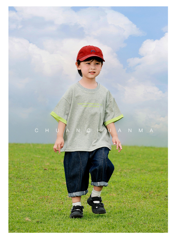 윈드 밸리 2025 여름 새 아동복 한국식 콘트라스트 컬러 AB 티셔츠 남녀용 올 매치 레터 쇼트 슬리브 티셔츠스토어 가기
