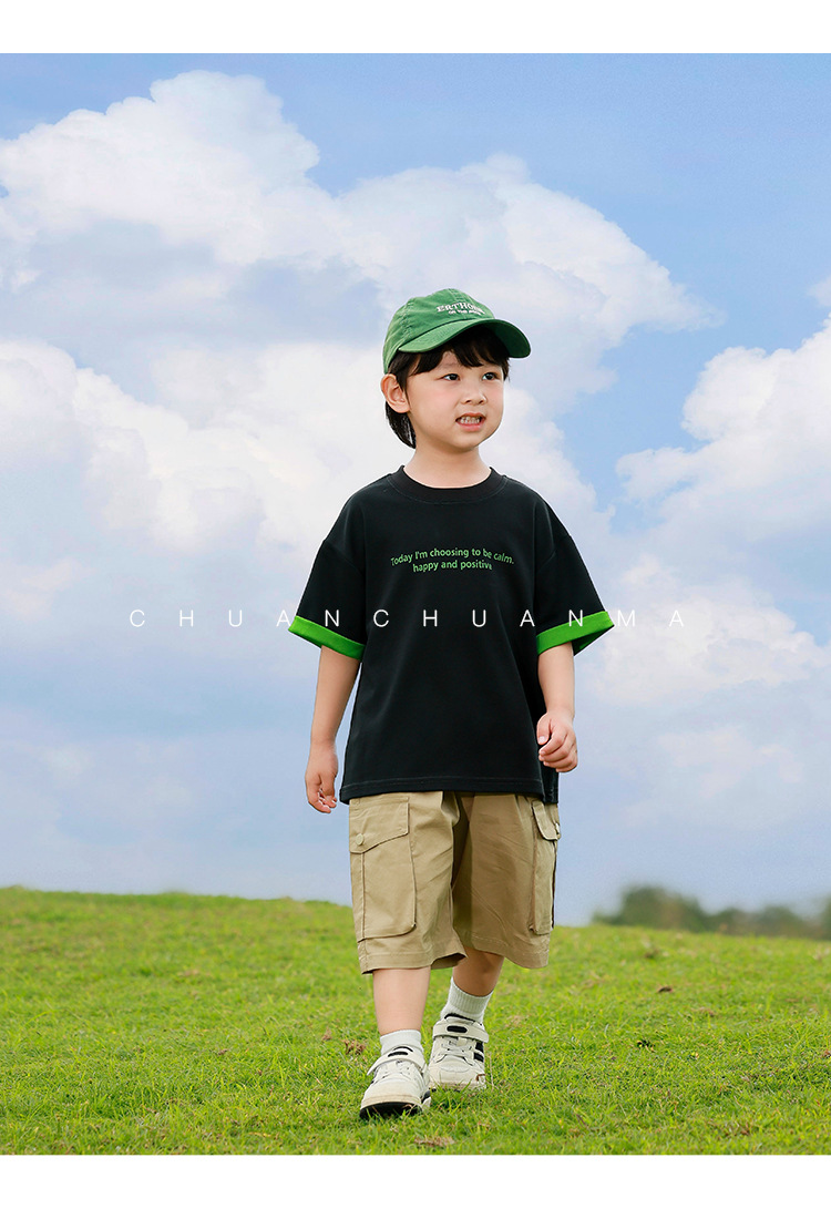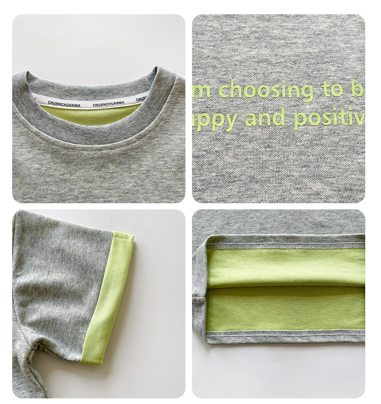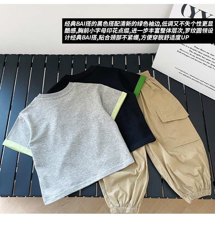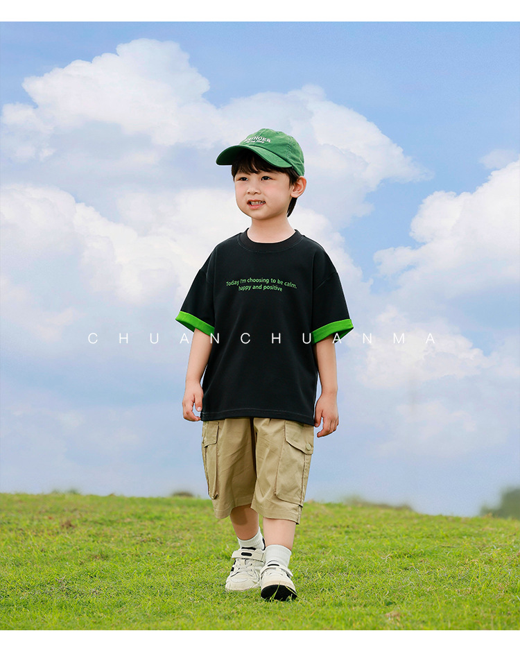 윈드 밸리 2025 여름 새 아동복 한국식 콘트라스트 컬러 AB 티셔츠 남녀용 올 매치 레터 쇼트 슬리브 티셔츠
