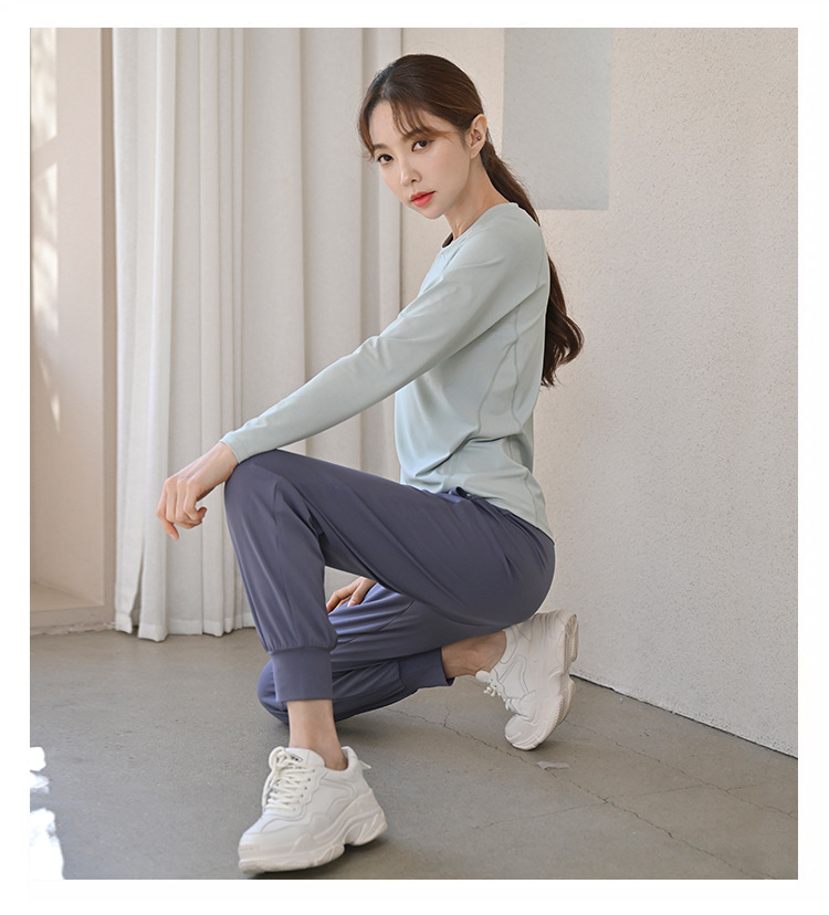 빠른 건조 스포츠 바지 여성의 얇은 높은 허리 탄성 야외 피트니스 바지 전문 느슨한 캐주얼 러닝 바지 요가 바지