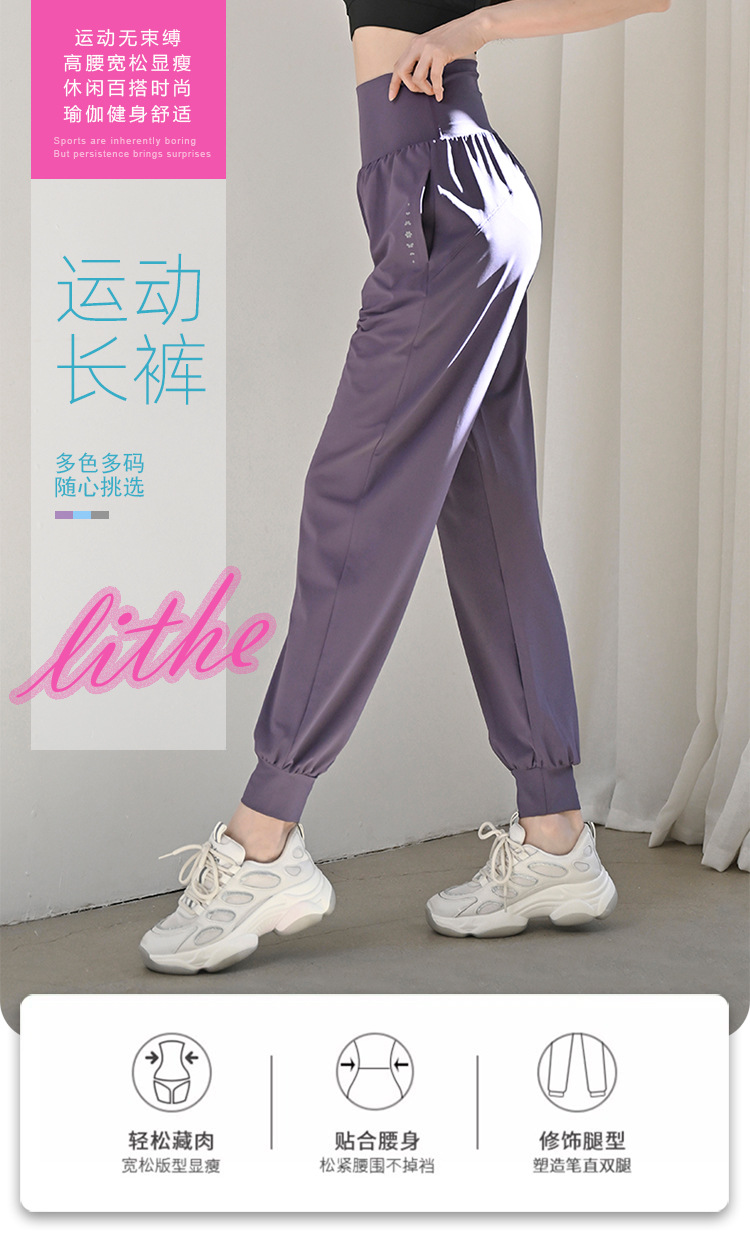 빠른 건조 스포츠 바지 여성의 얇은 높은 허리 탄성 야외 피트니스 바지 전문 느슨한 캐주얼 러닝 바지 요가 바지스토어 가기