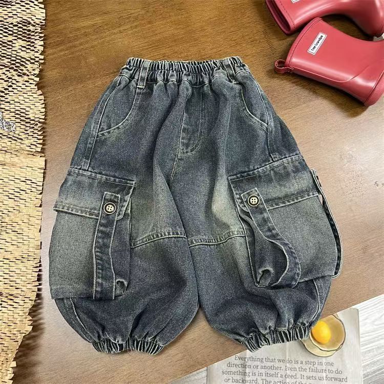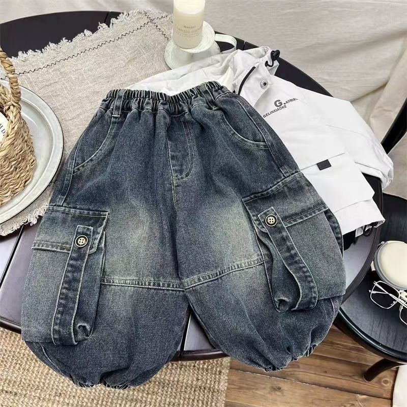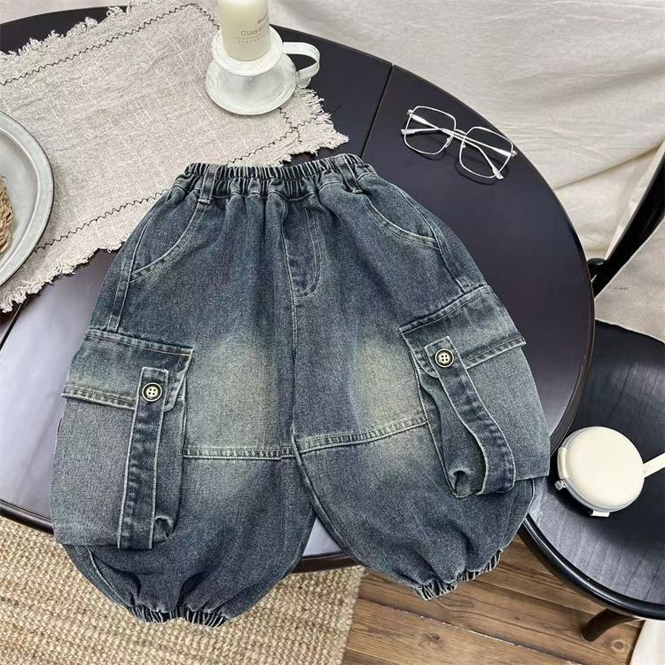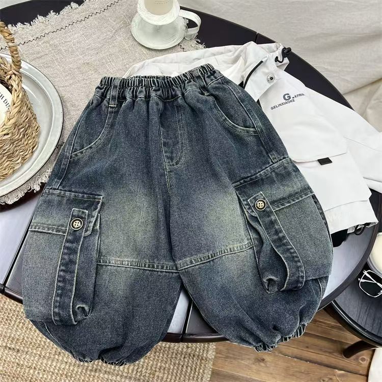 남아 청바지 2025 봄 가을 신상 아동 바지 트렌디하고 쿨하고 패셔너블하며 캐주얼하고 루즈한 블루머 트렌디