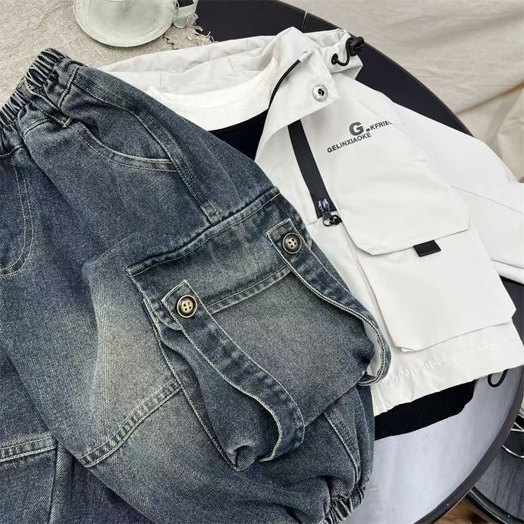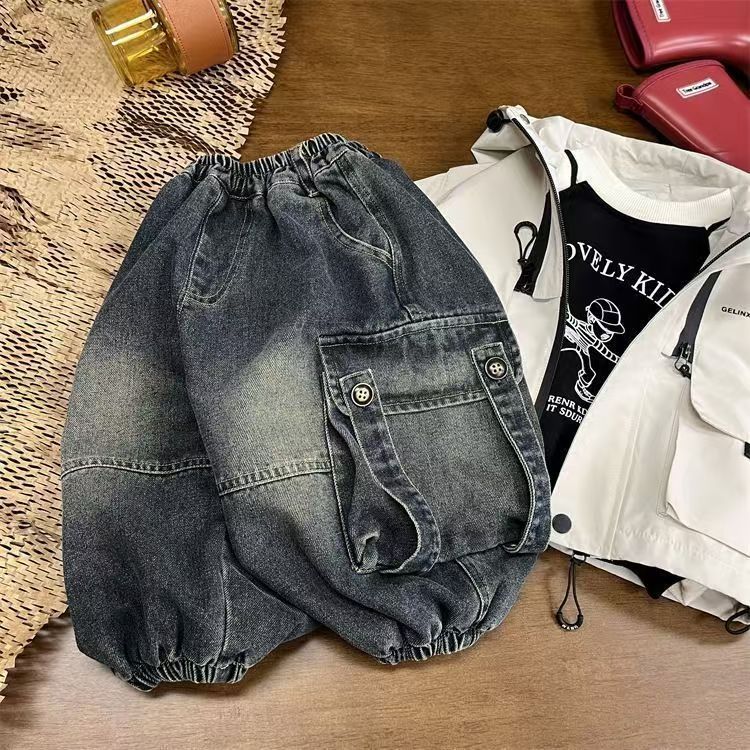남아 청바지 2025 봄 가을 신상 아동 바지 트렌디하고 쿨하고 패셔너블하며 캐주얼하고 루즈한 블루머 트렌디스토어 가기