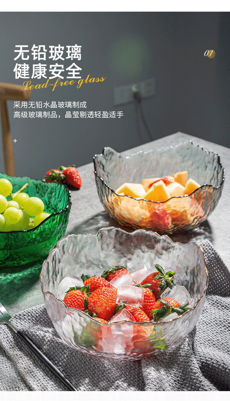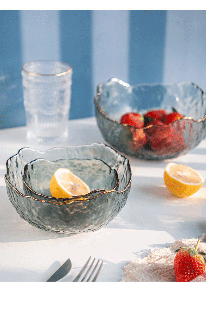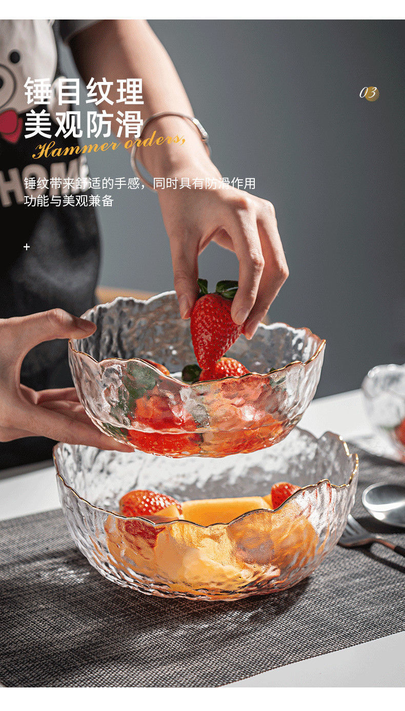 고양이 주방 일본식 금테 망치 무늬 유리 그릇 투명 과일 접시 인터넷 연예인 야채 샐러드 그릇 가정용 고가 도매