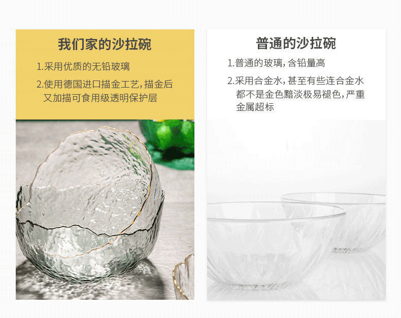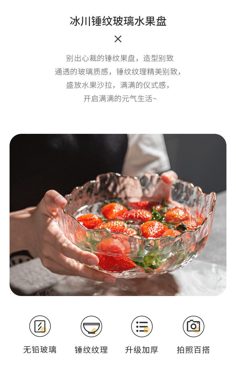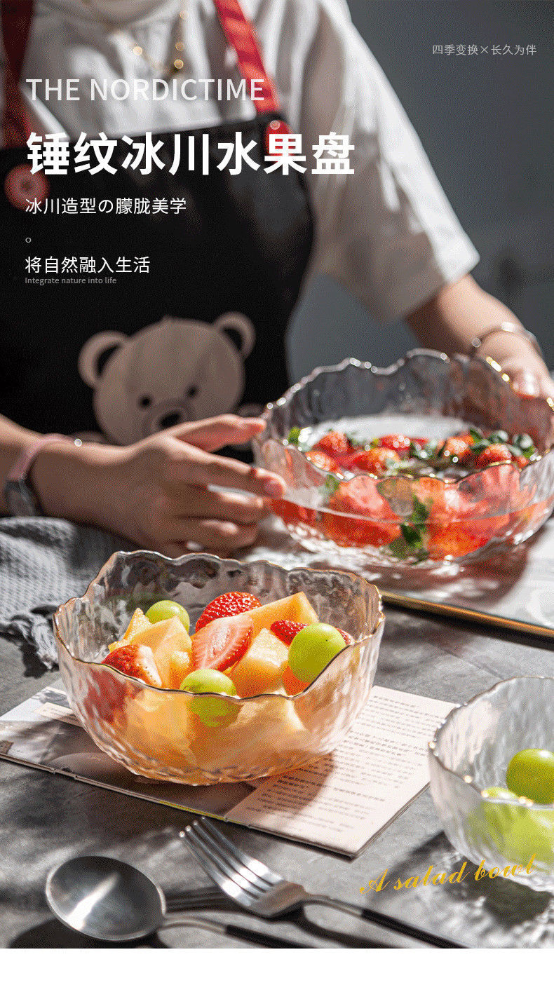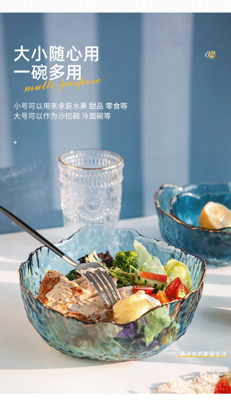 고양이 주방 일본식 금테 망치 무늬 유리 그릇 투명 과일 접시 인터넷 연예인 야채 샐러드 그릇 가정용 고가 도매