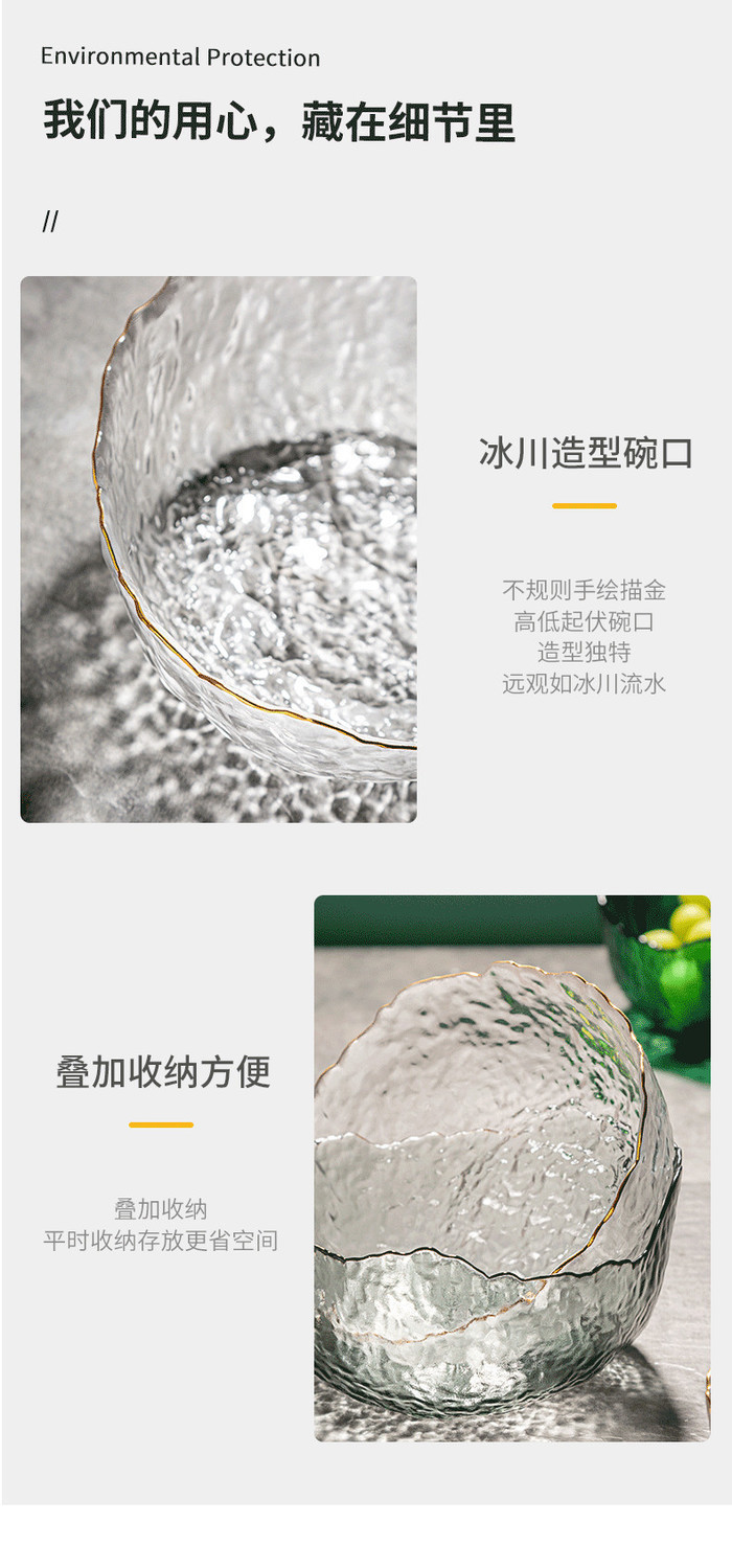 고양이 주방 일본식 금테 망치 무늬 유리 그릇 투명 과일 접시 인터넷 연예인 야채 샐러드 그릇 가정용 고가 도매스토어 가기