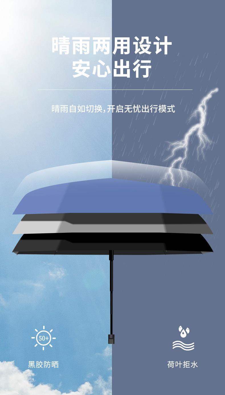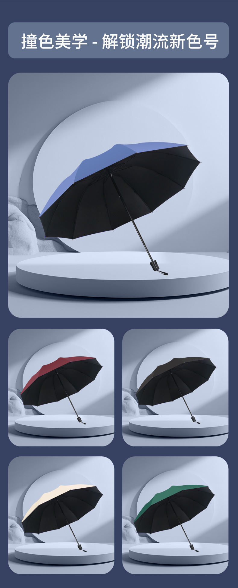 큰 12-뼈 검은 고무 접히는 맑은 우산 큰 두꺼운 3 인 써니 우산 인쇄 로고 광고 우산스토어 가기