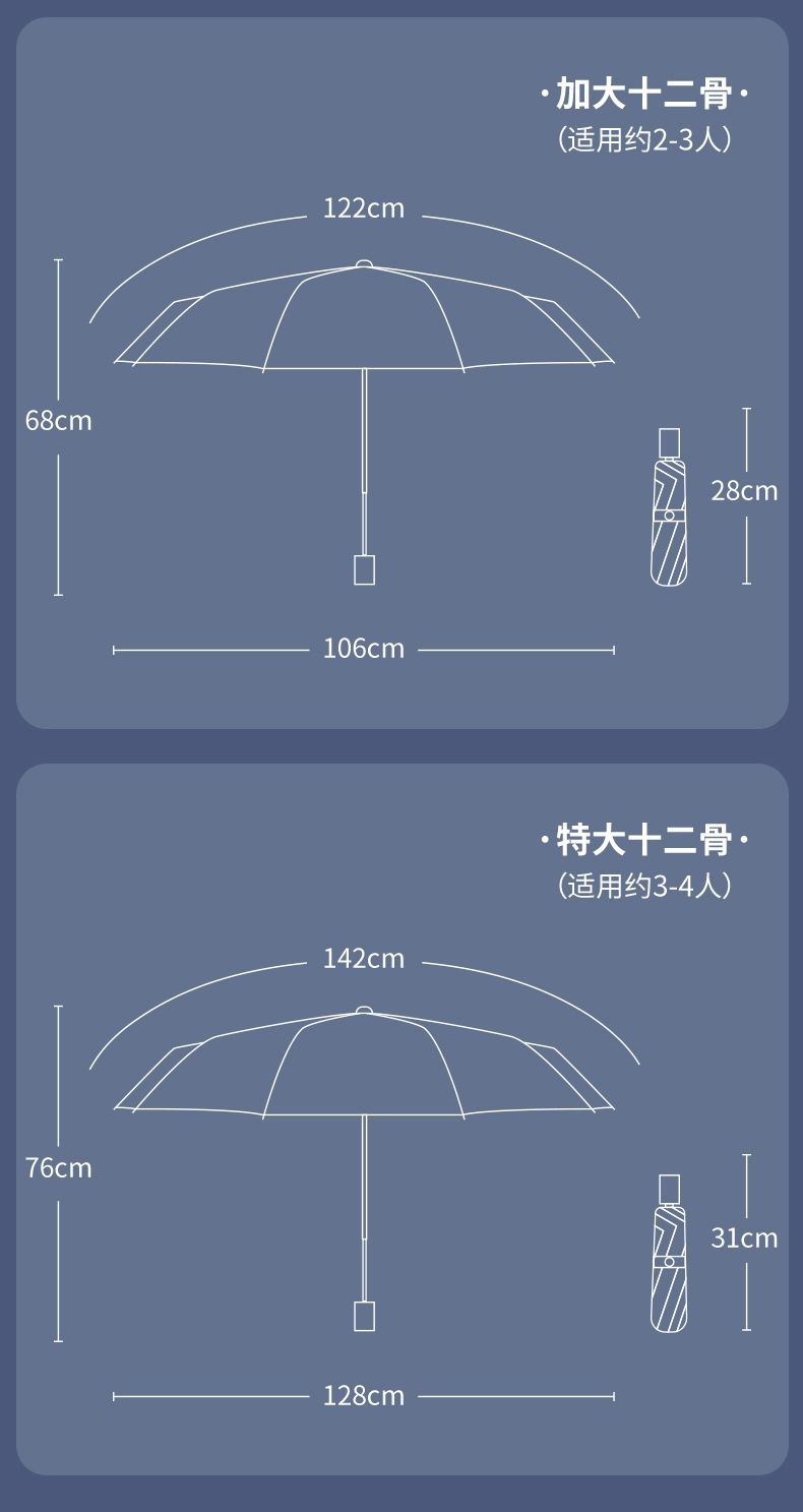 • [12개뼈] 125cm 대형 3~4인용 폭풍우 방지 - 네이비블루