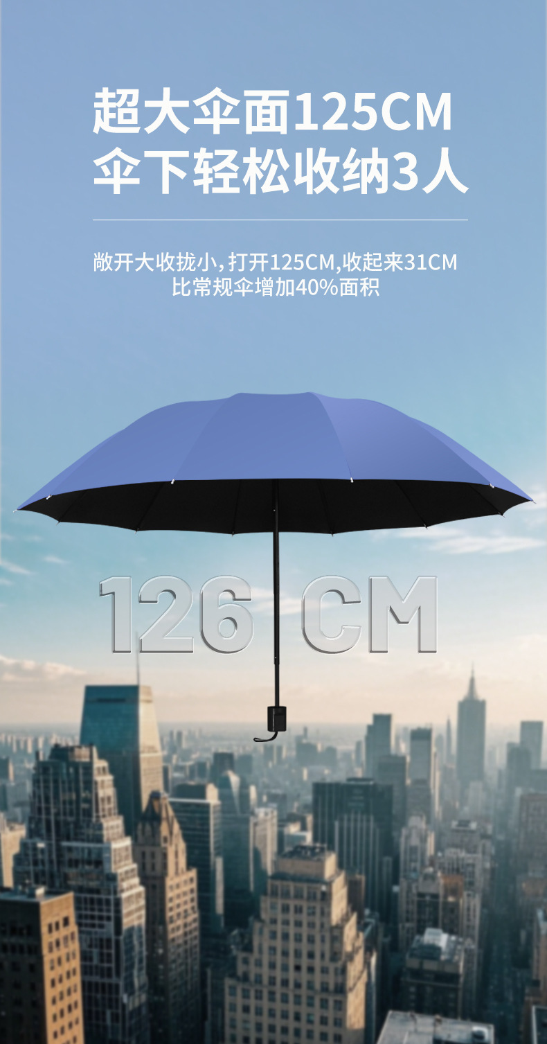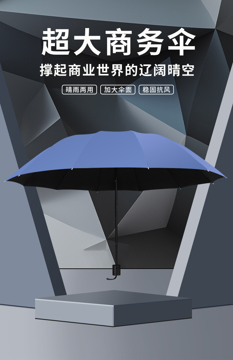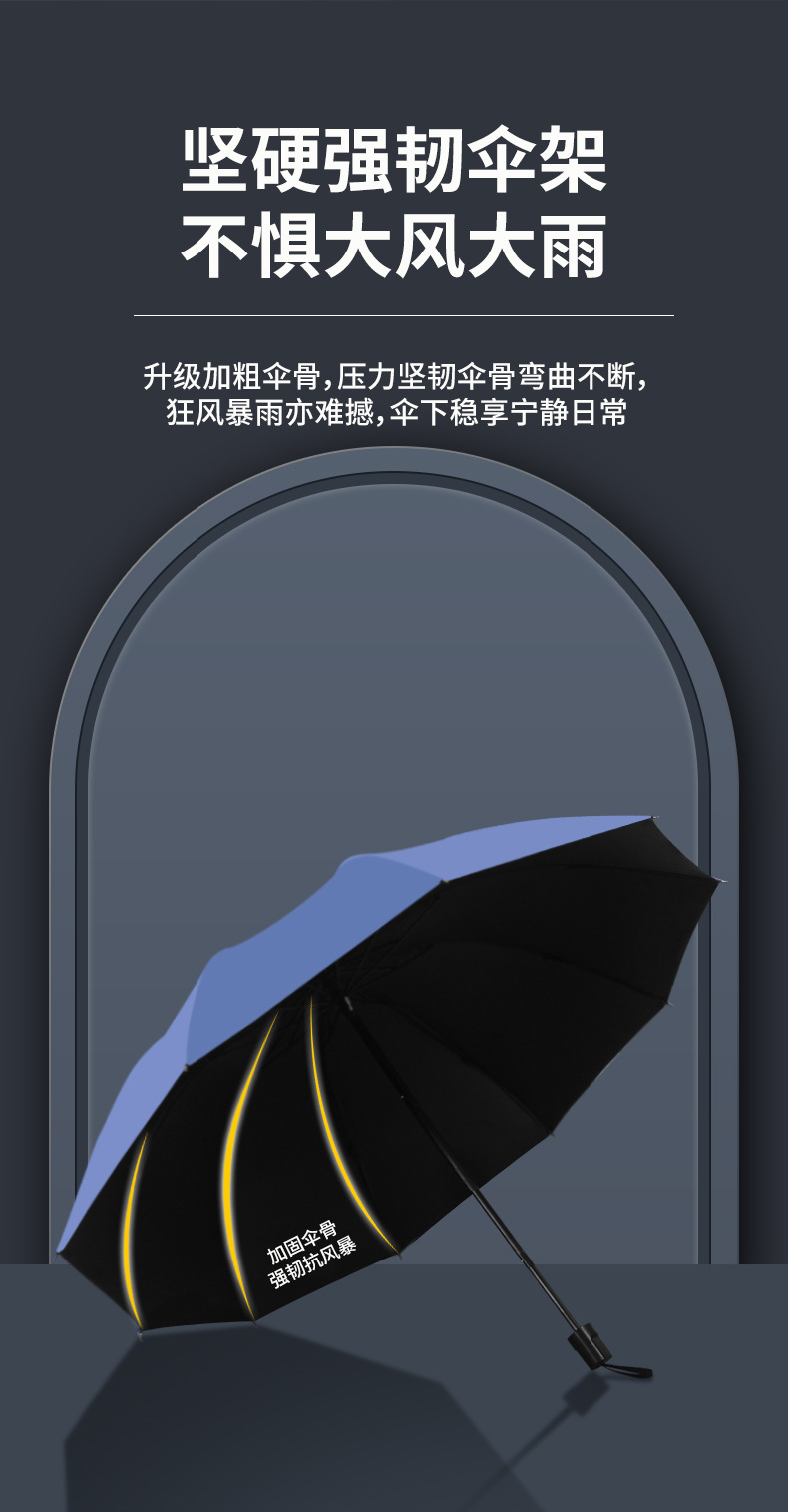 큰 12-뼈 검은 고무 접히는 맑은 우산 큰 두꺼운 3 인 써니 우산 인쇄 로고 광고 우산