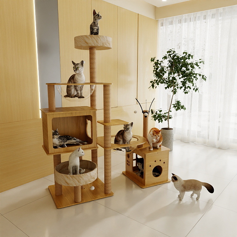 고양이 등반 랙 대형 고양이 둥지 통합 복합 고양이 나무 고양이 잡아 기둥 점프 플랫폼 사계절 유니버설 우주 캡슐 고양이 등반 랙