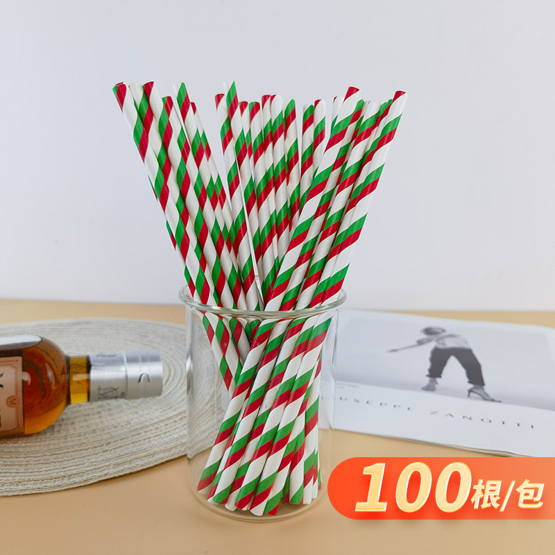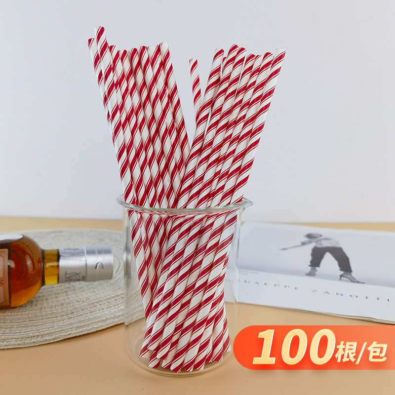 ∝일회용 생분해성 종이 빨대 축제 빨간색 빨대 크리스마스 장식 디저트 베이킹 장식 종이 빨대