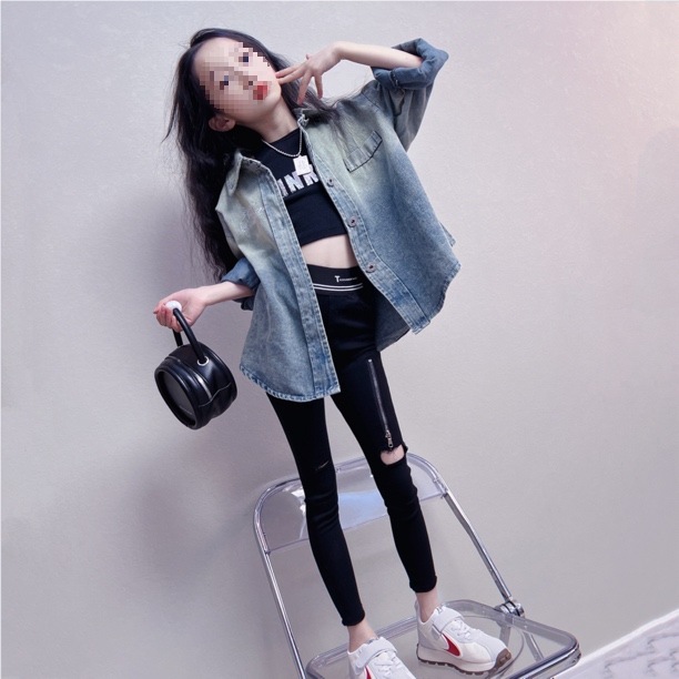 여자 데님 재킷 2024 새로운 어린이 봄 탑 한국 스타일 카디건 재킷 여자 셔츠스토어 가기