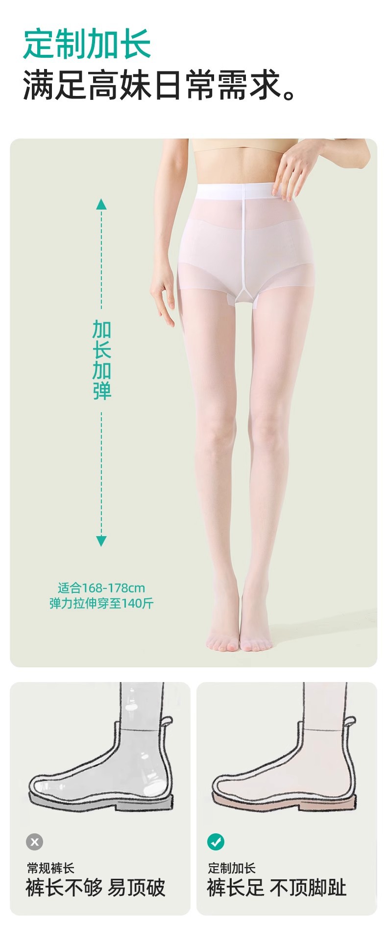 키가 큰 흰색 실크 스타킹 여성의 봄과 여름 0d 얇은 안티 후크 실크는 파일 길어진 순수한 바람 바닥 팬티 스타킹에서 떨어지지 않습니다.스토어 가기
