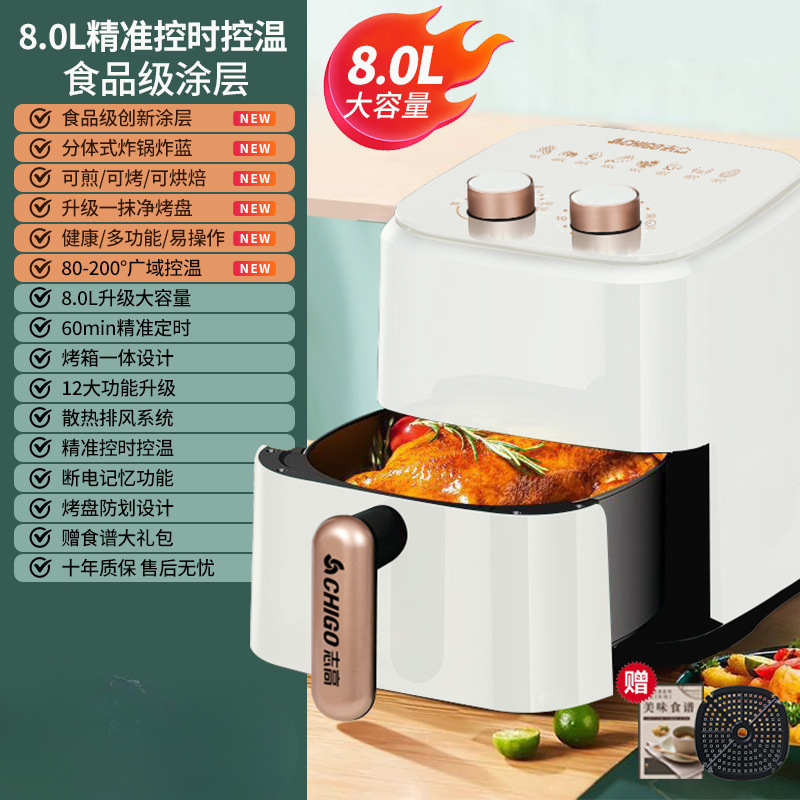 • [Xiaomi White 8.0L/지능형 온도 조절] 15개의 대형 스마트 메뉴 + 오일 프리 + 논스틱 팬 + 360°순환하는 뜨거운 공기