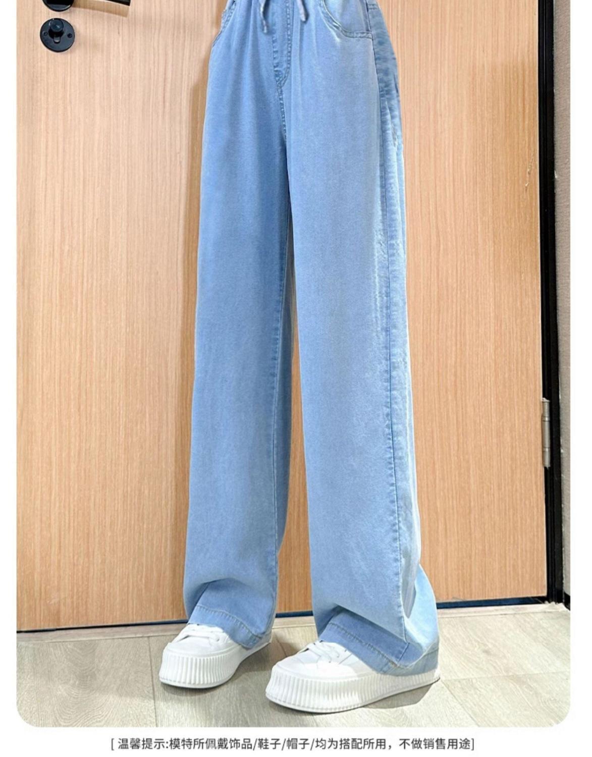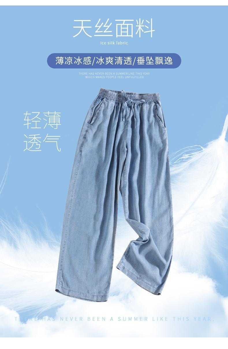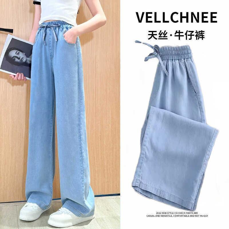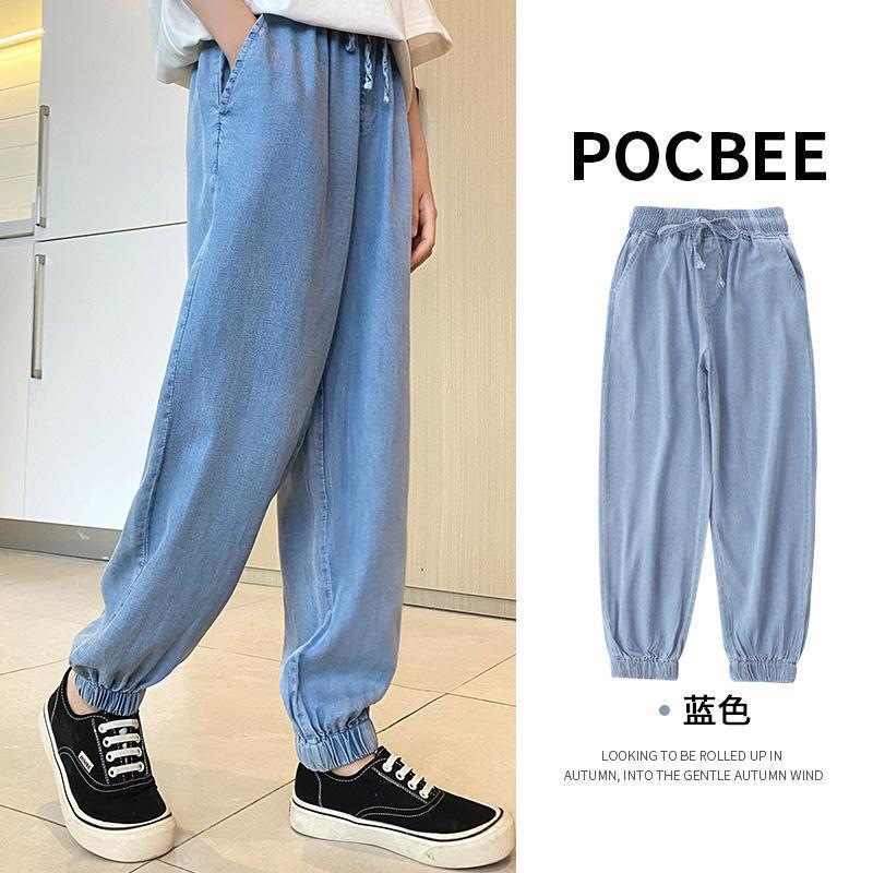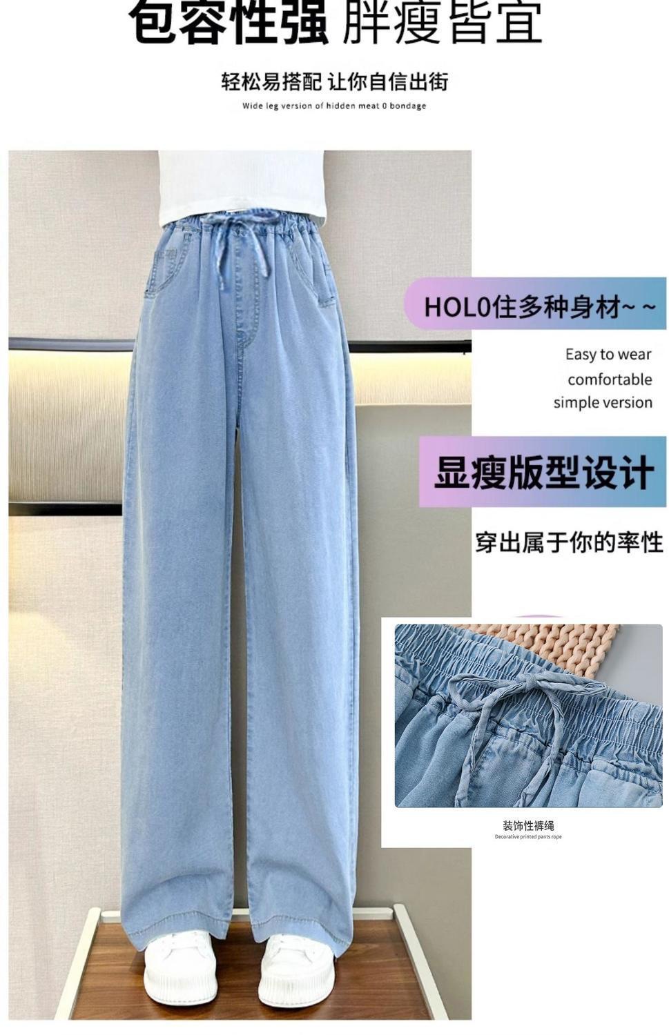소녀의 여름 데님 바지 2025 새로운 큰 소년 소녀의 모기 방지 바지 아이스 실크 여름 얇은 어린이 넓은 다리 바지스토어 가기