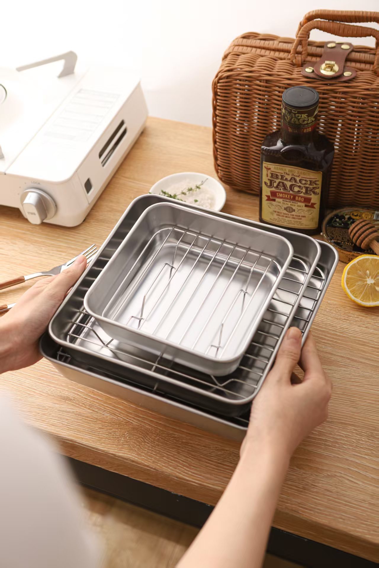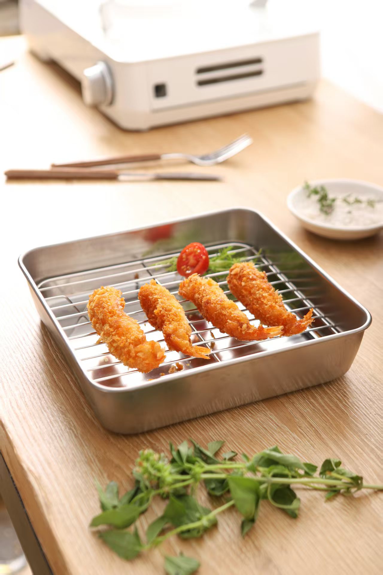 크로스보더 304 스테인리스 사각 트레이, 메쉬 프레임 포함, 두꺼운 에어프라이어 전용 필터 트레이, 기름 제거 트레이스토어 가기