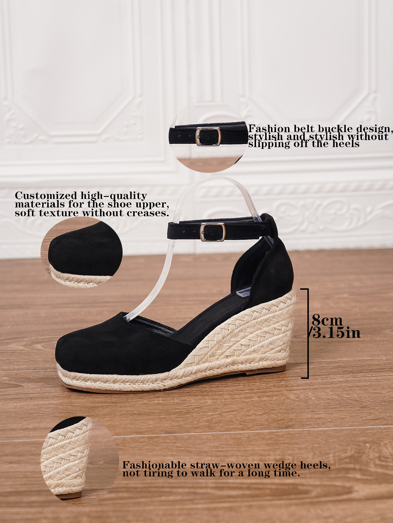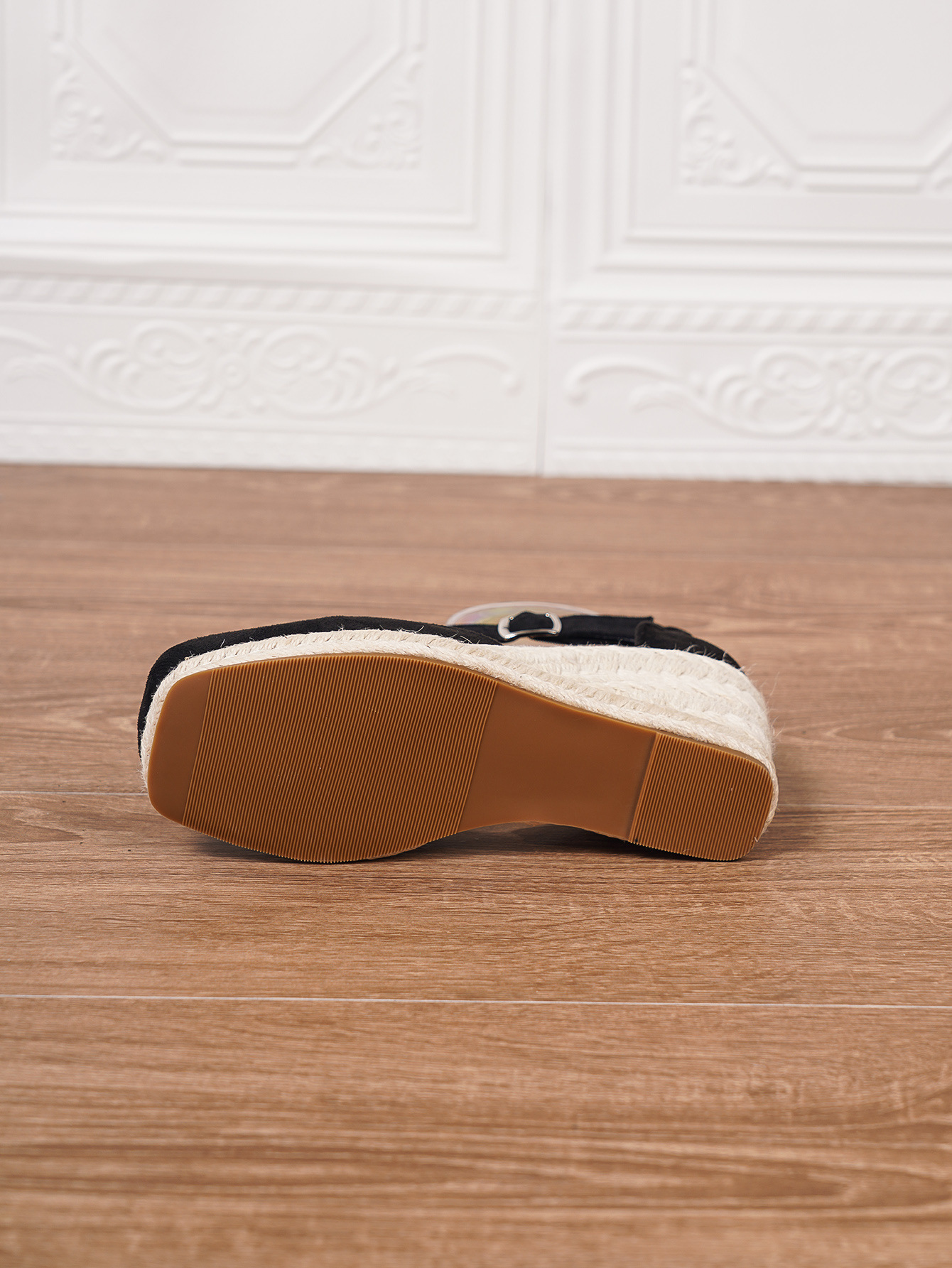 여성용 캔버스 신발 웨지 샌들, 여름 휴가용 신축성 있는 밴드 백 지퍼 슬립온 라운드 투 중공 밀짚 신발스토어 가기