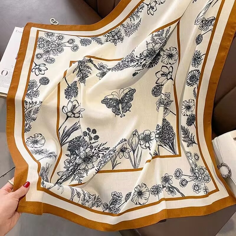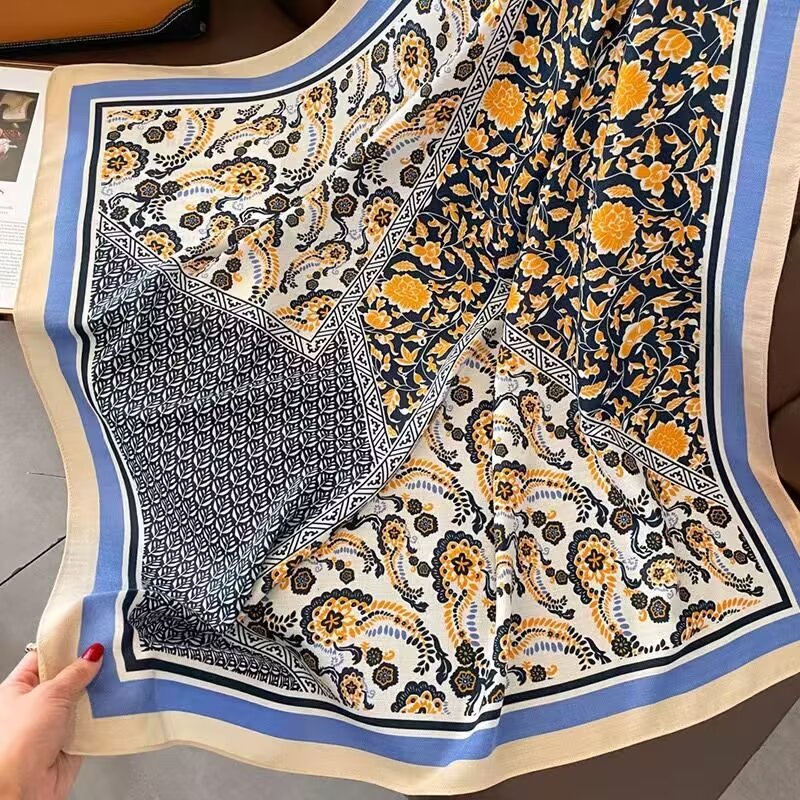 새로운 90*90 면 및 린넨 스퀘어 스카프 봄과 가을 조커 클래식 패션 실크 스카프 가을과 겨울 따뜻한 스카프 얇은 터번