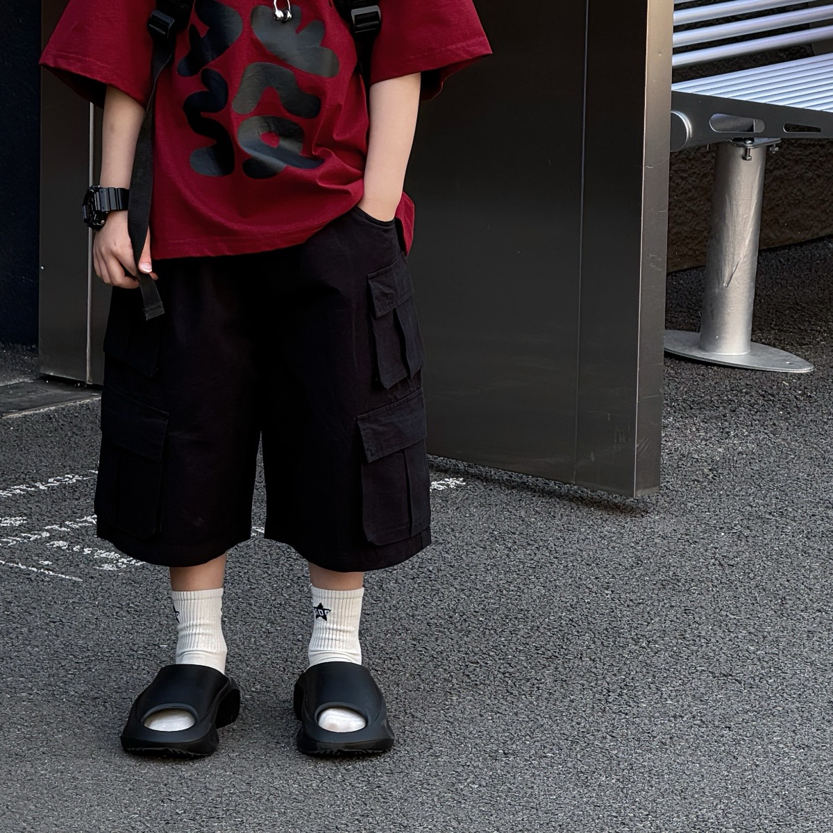 Tairu 2025 여름 새로운 도착 한국 스타일 소년 올매치 느슨한 유행 서양 스타일 오버홀 어린이를위한 트렌디 한 반바지스토어 가기