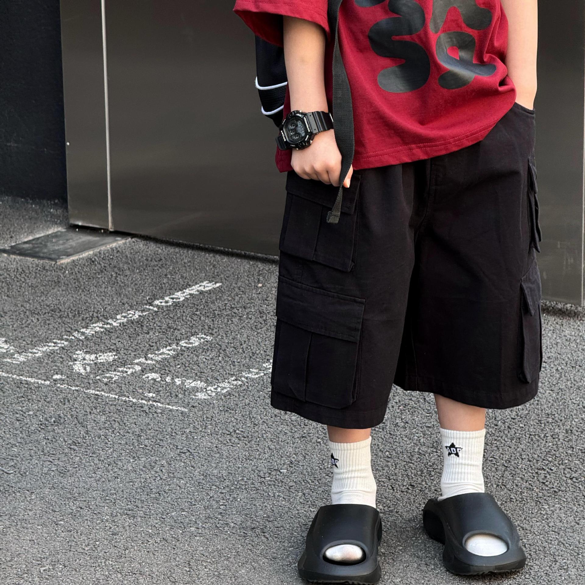 Tairu 2025 여름 새로운 도착 한국 스타일 소년 올매치 느슨한 유행 서양 스타일 오버홀 어린이를위한 트렌디 한 반바지