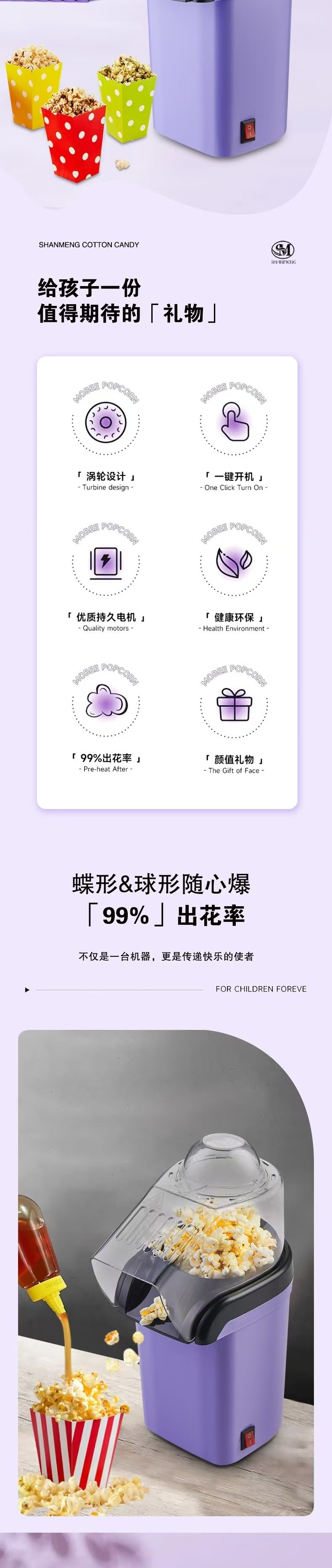 • 매력적인 보라색 팝콘 기계의 SM-1200 고급 버전
