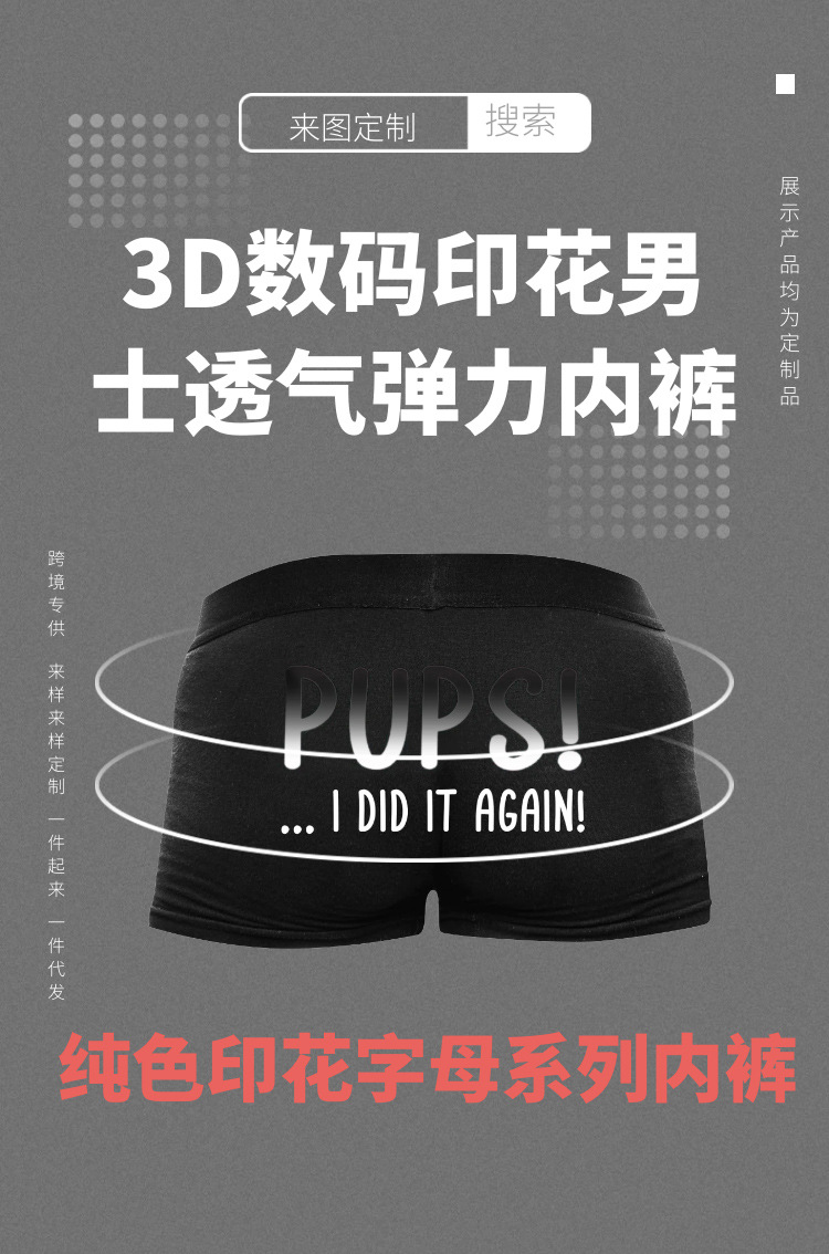 순수한 검정색 3D 인쇄 문자 맞춤형 남성 속옷 통기성 중간 허리 성인 속옷 복서 팬티 초극세 폴리 에스터 수영복스토어 가기