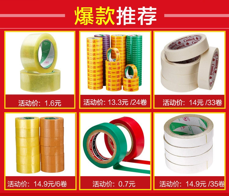 【产品用途】广泛应用于包装封箱,一般封贴修补、捆扎和固定等方面,可根据胶带厚度使用于不同的物品包装。