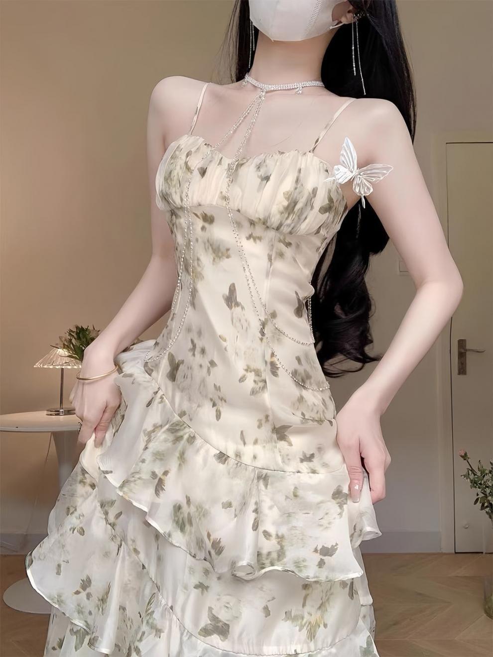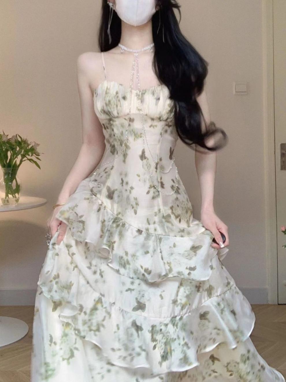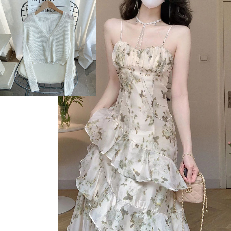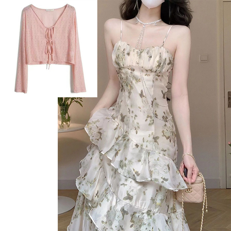 슬립 스커트 어린이 세트 여름 새로운 프랑스 허리 귀 슈퍼 요정 원피스 레이스 카디건 2 피스 세트스토어 가기