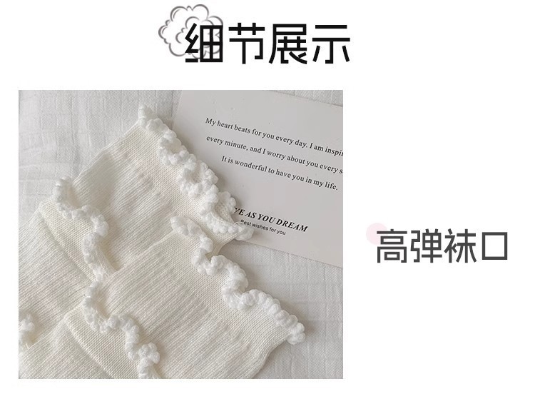 봄과 여름 얇은 단색 더미 양말 여성 일본식 나무 귀 중간 길이 양말 한국식 케이크 레이스 양말 달콤한 대학 스타일스토어 가기