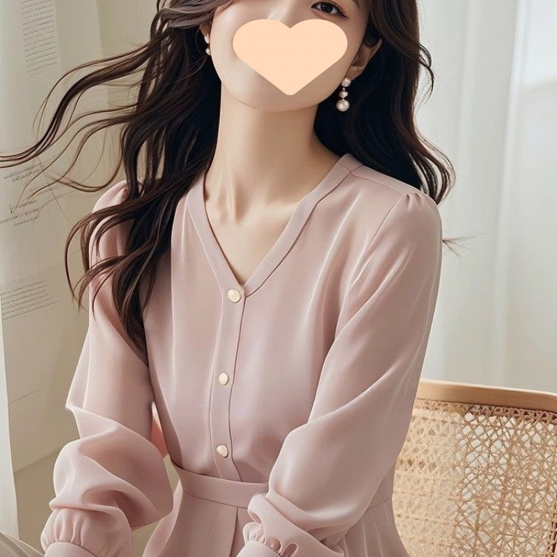 핑크 긴 소매 셔츠 프랑스 스타일 가벼운 럭셔리 디자인 센스 틈새 2025 여성을위한 새로운 봄과 가을 세련된 독특한 탑스토어 가기