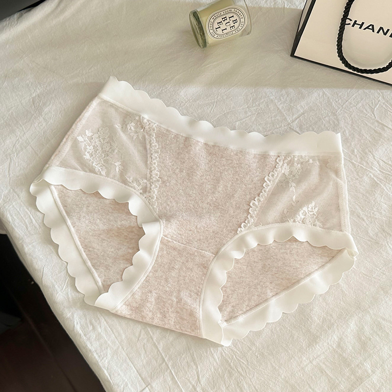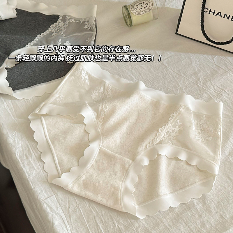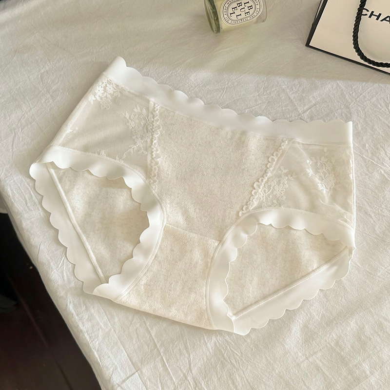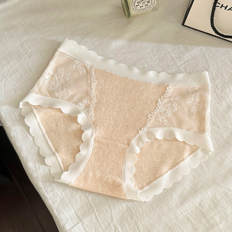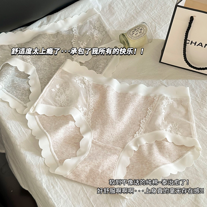 프랑스 스타일 속옷 여성용 순수 코튼 7A 박테리아 클래스 면화 스티칭 레이스 코튼 크로치 편안한 엉덩이 중간 허리 브리프스토어 가기