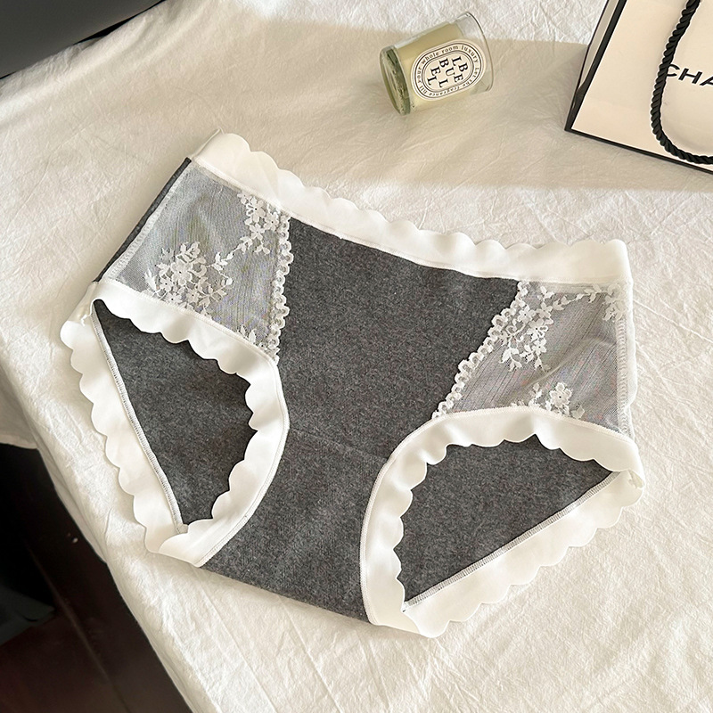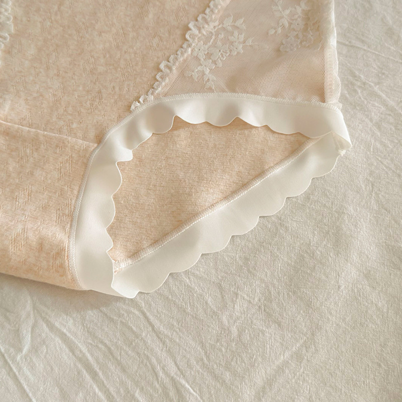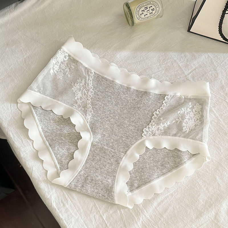 프랑스 스타일 속옷 여성용 순수 코튼 7A 박테리아 클래스 면화 스티칭 레이스 코튼 크로치 편안한 엉덩이 중간 허리 브리프