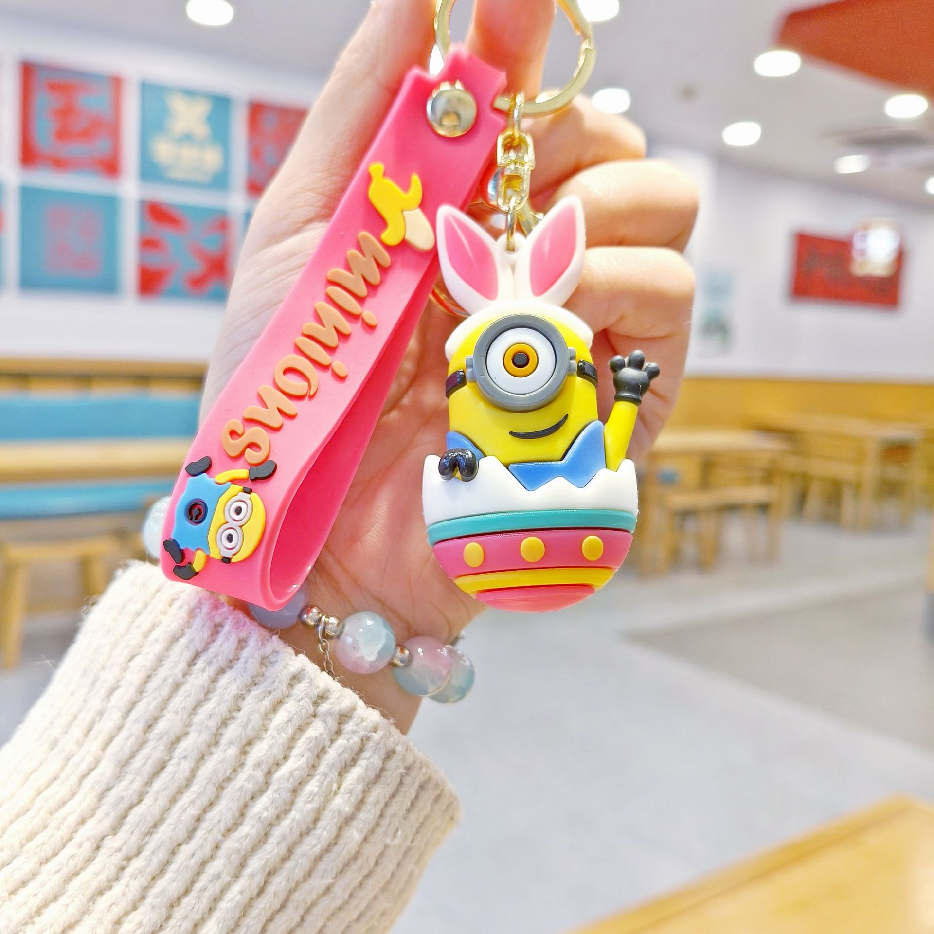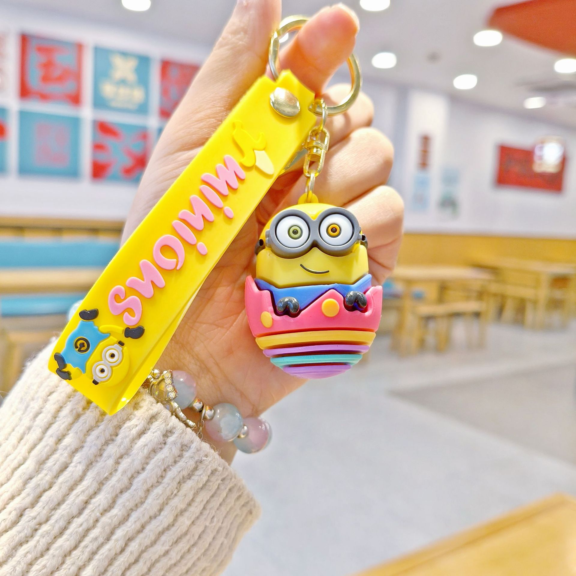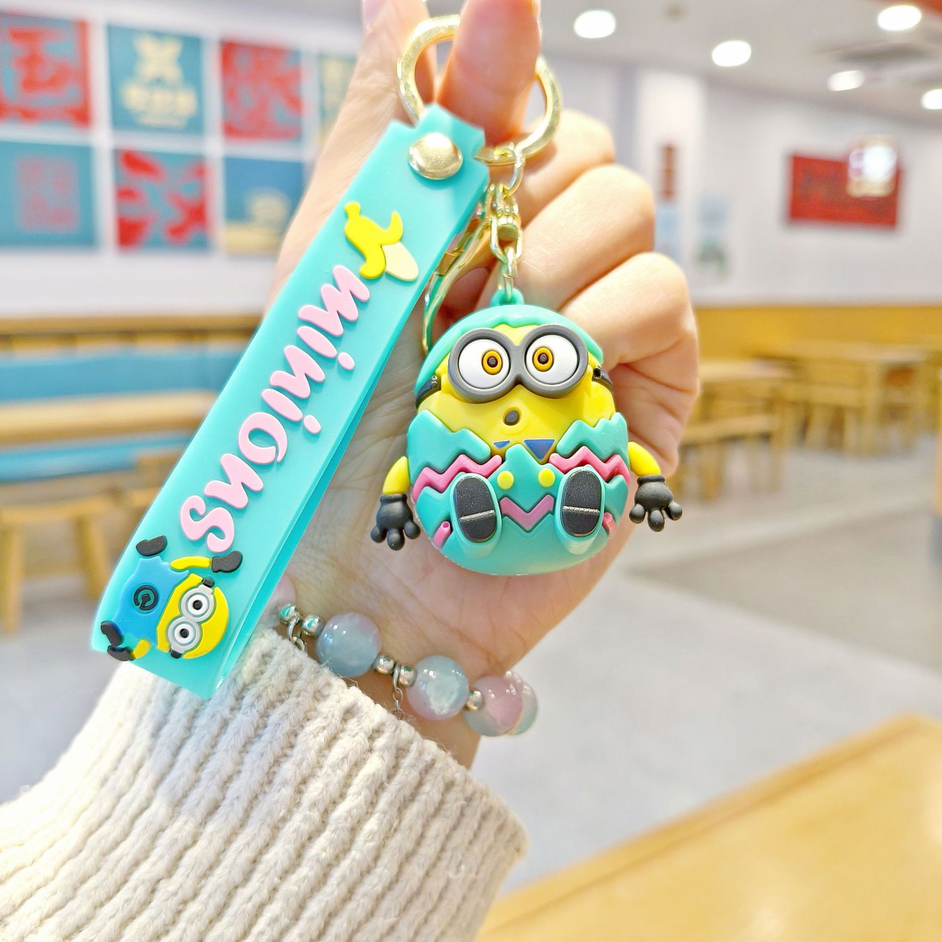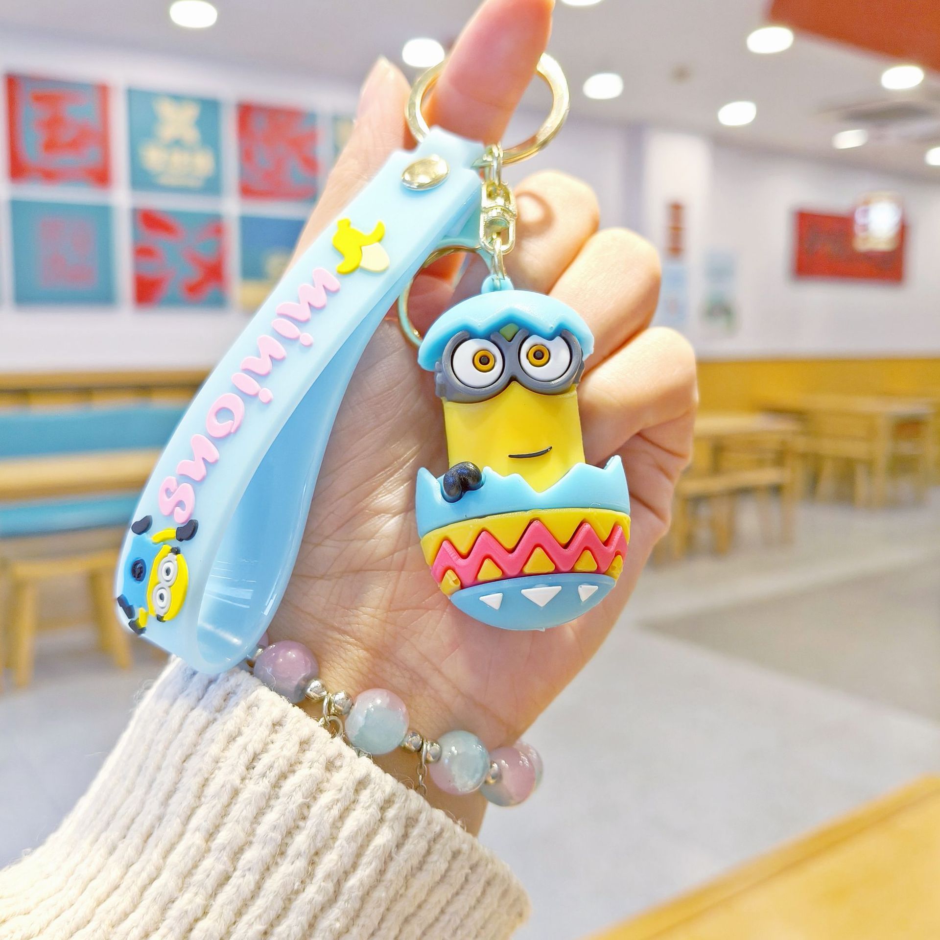 새로운 만화 달걀 껍질 미니언 키 체인 펜던트 커플 작은 선물 학교 가방 액세서리 아기 기계 작은 선물스토어 가기