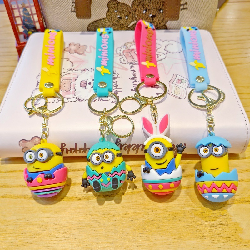 새로운 만화 달걀 껍질 미니언 키 체인 펜던트 커플 작은 선물 학교 가방 액세서리 아기 기계 작은 선물