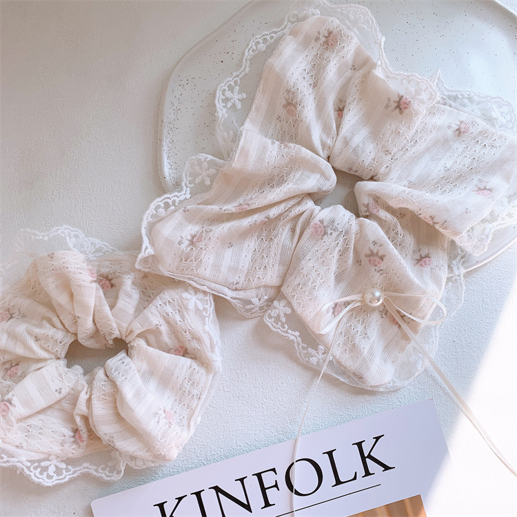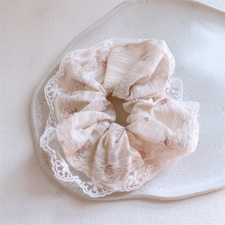 한국식 활 꽃 레이스 스퀘어 스카프 대형 장내 헤어 링 달콤한 소녀 고급 폰다 고무 탄선 헤어 로프 헤어 액세서리스토어 가기