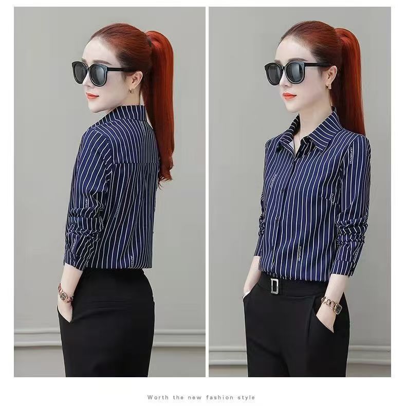 스트라이프 셔츠 여성 긴팔 2025 봄 신작 한국 스타일 전문 흰색 셔츠 여성 쉬폰 셔츠 슬림 바닥 셔츠스토어 가기
