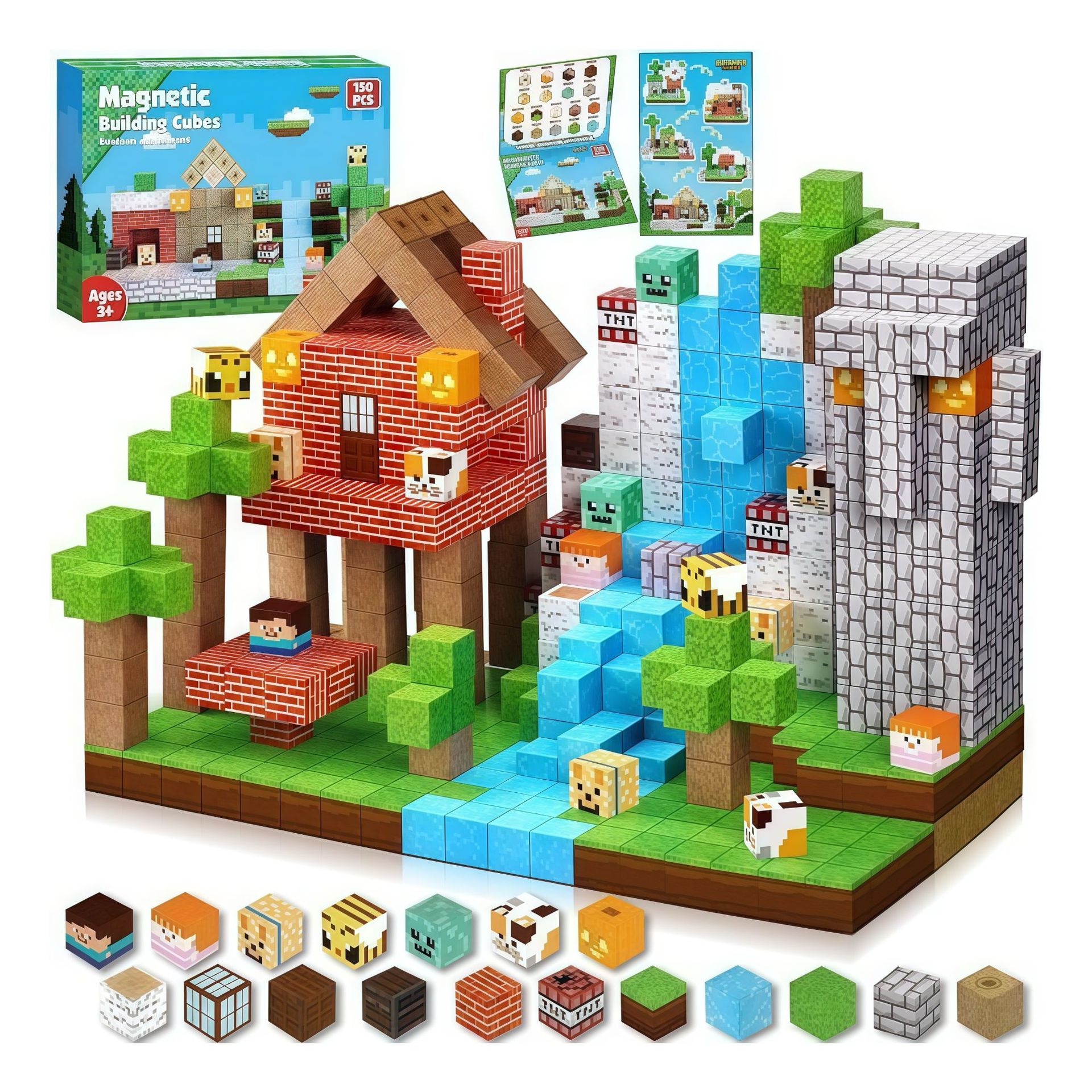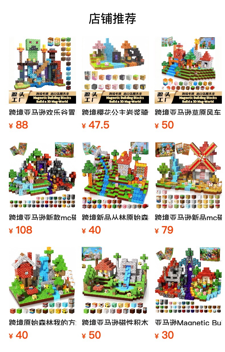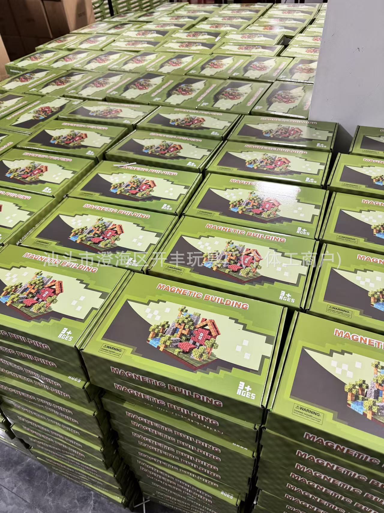 크로스보더 아마존 MC 마이 큐브 월드 자석 빌딩 블록 세트 원시 숲 자석 입자 자석 장난감스토어 가기