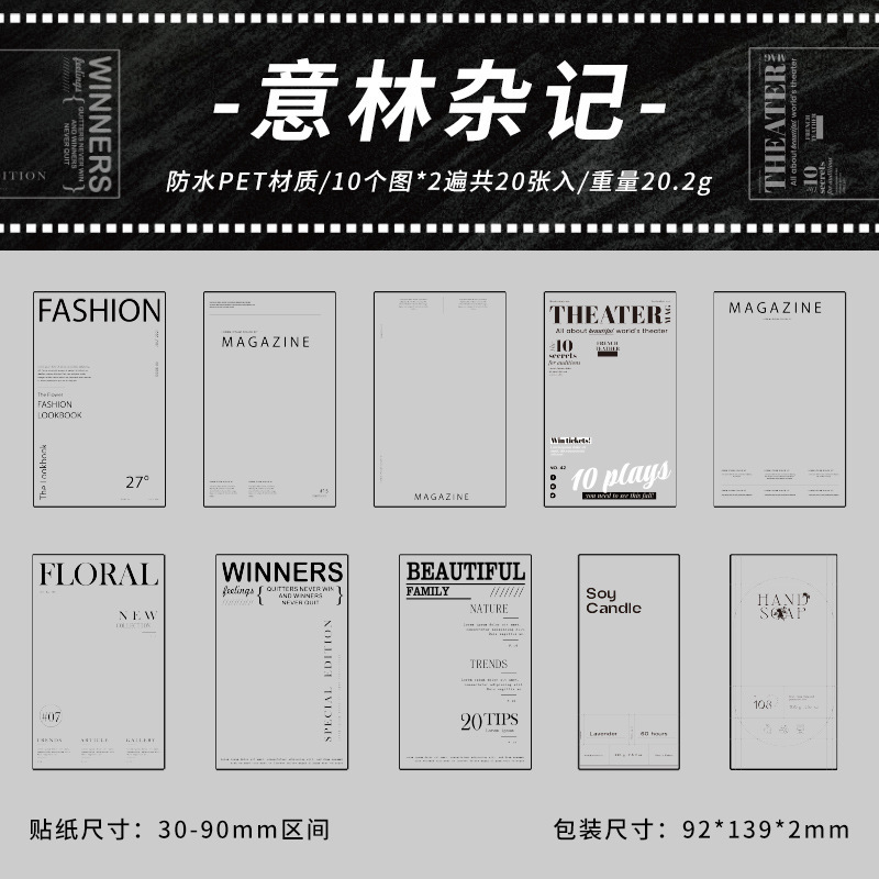 인쇄 컬렉션 시리즈 애완 동물 스티커 20 조각 복고풍 사진 프레임 핸드북 장식 재료 스티커 diy 기본 스티커스토어 가기