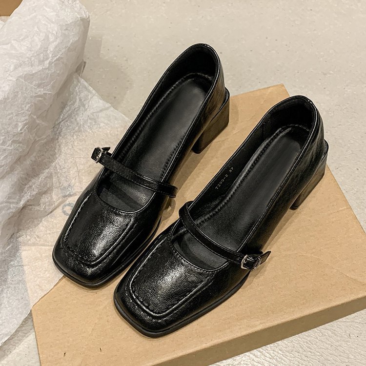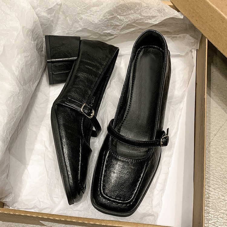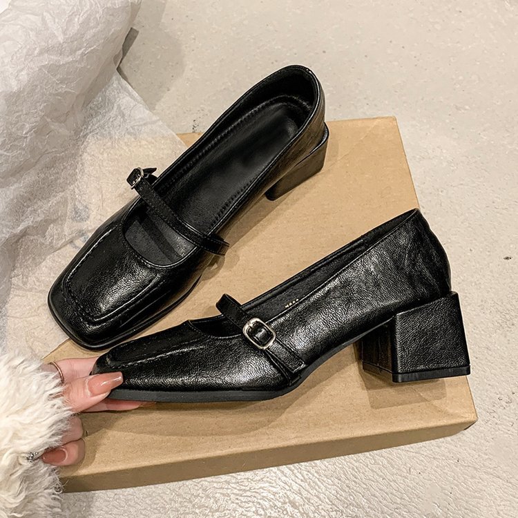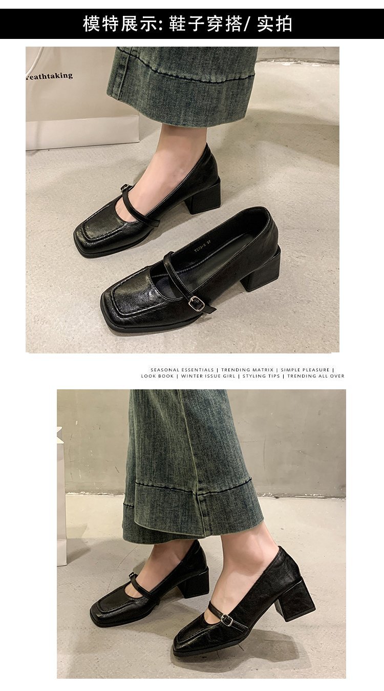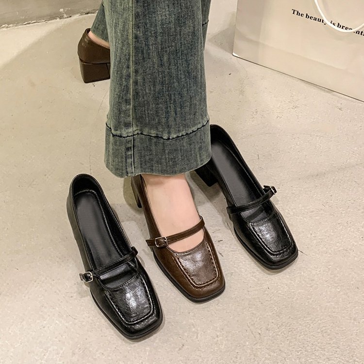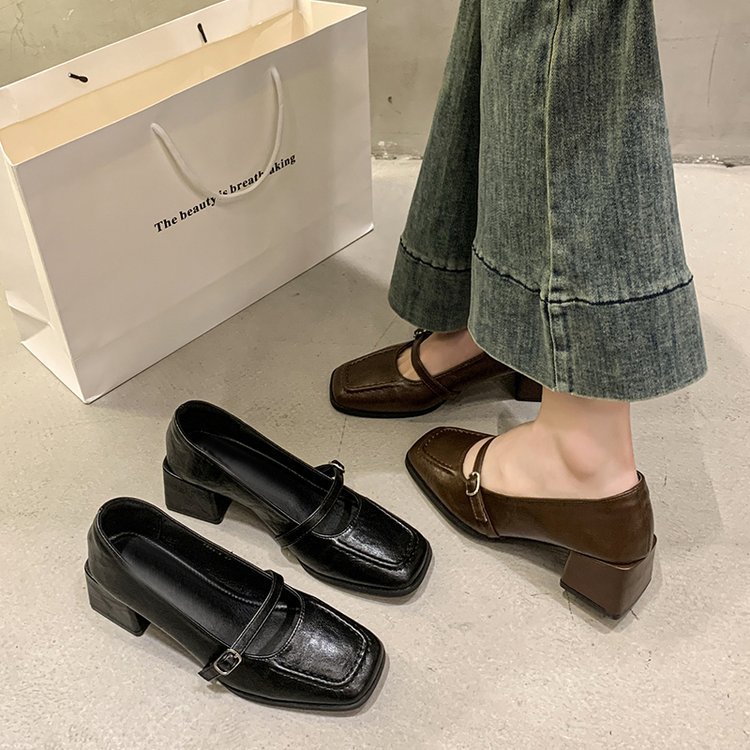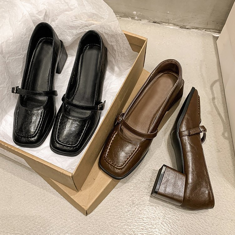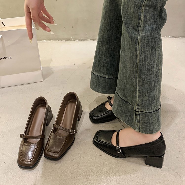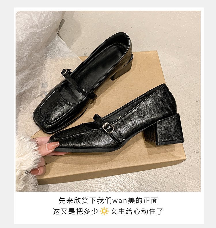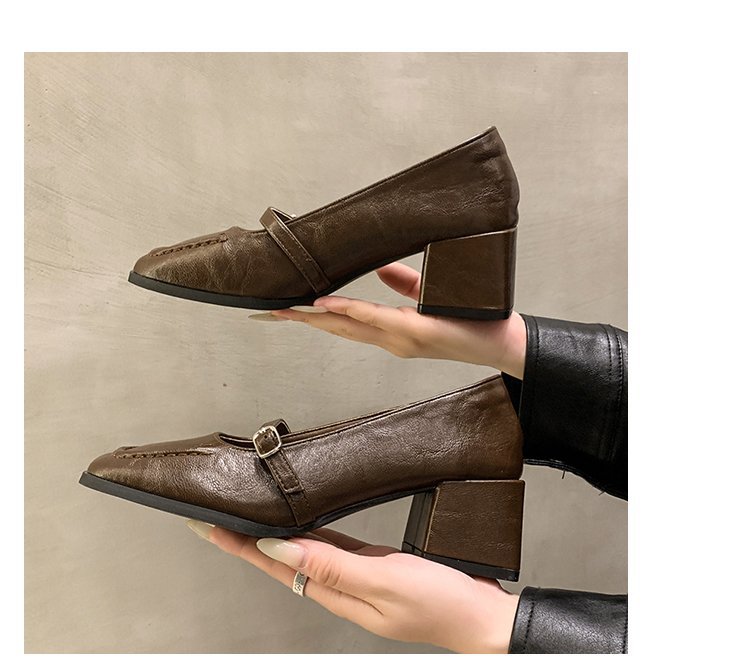 레트로 스퀘어 토 하이힐, 여성용 펌프스 슈즈, 봄 가을 신상 프렌치 스타일 이브닝 스타일 두꺼운 굽 메리제인 작은 가죽 신발스토어 가기