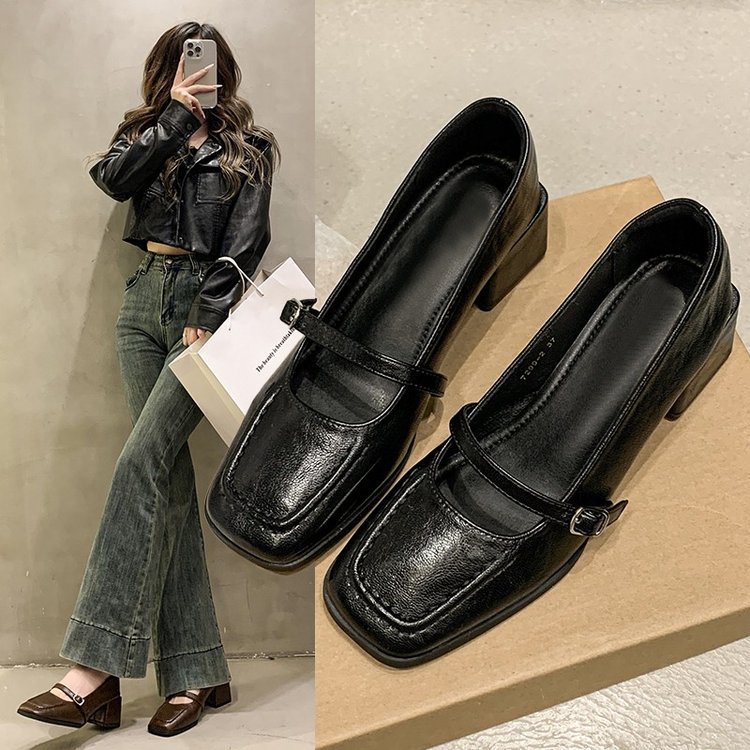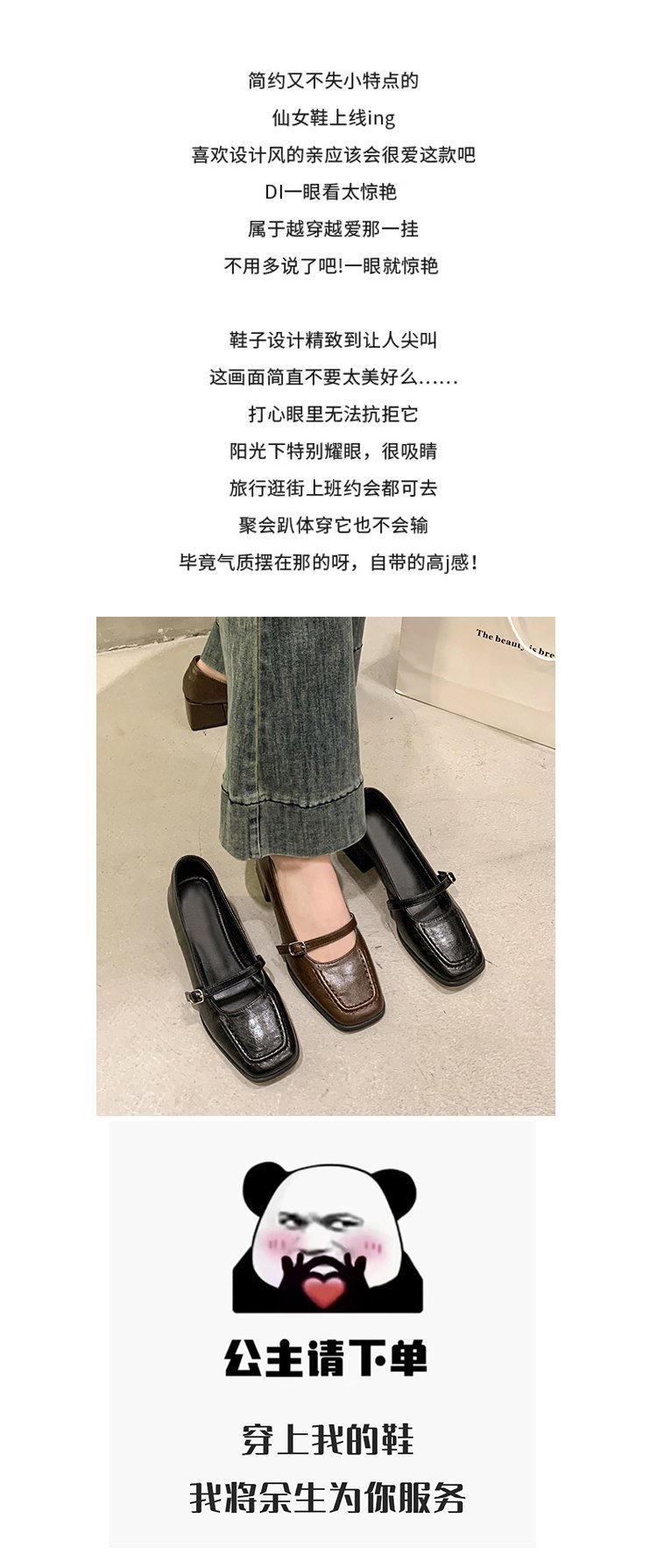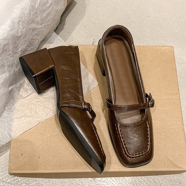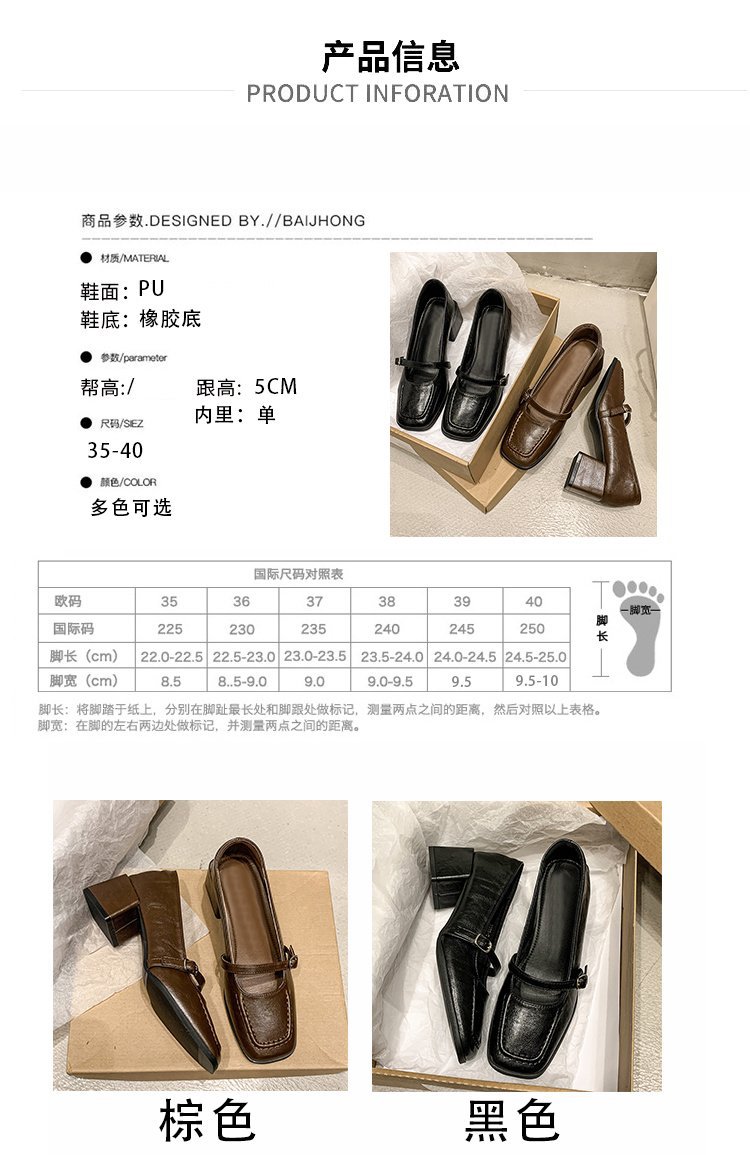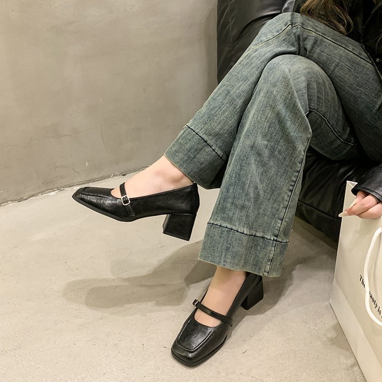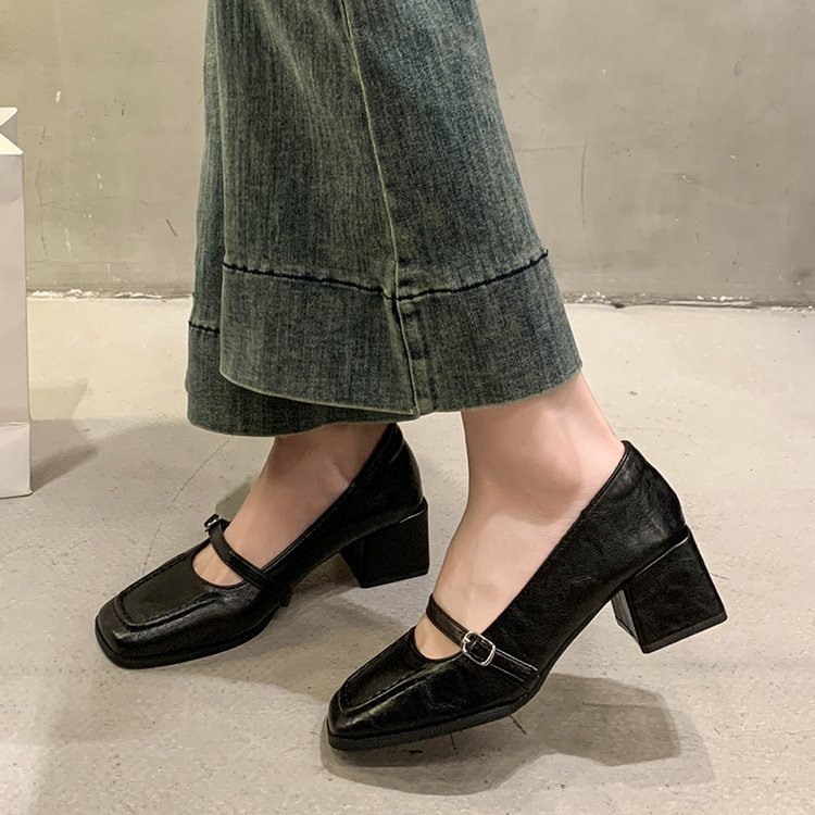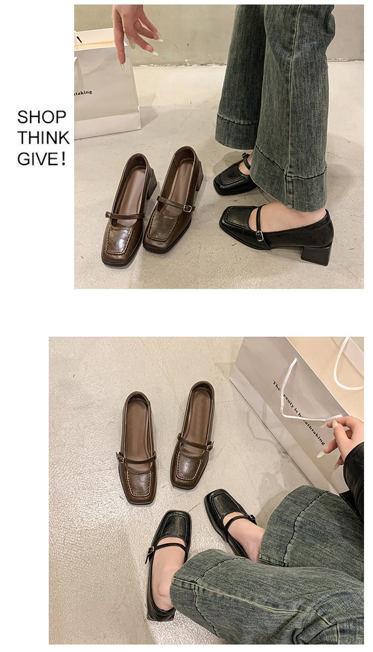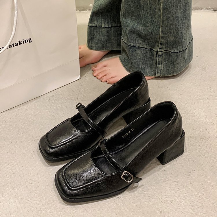 레트로 스퀘어 토 하이힐, 여성용 펌프스 슈즈, 봄 가을 신상 프렌치 스타일 이브닝 스타일 두꺼운 굽 메리제인 작은 가죽 신발스토어 가기