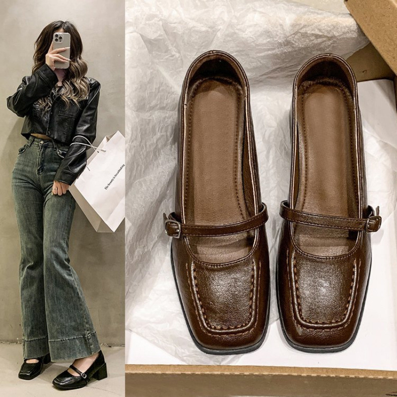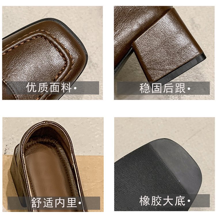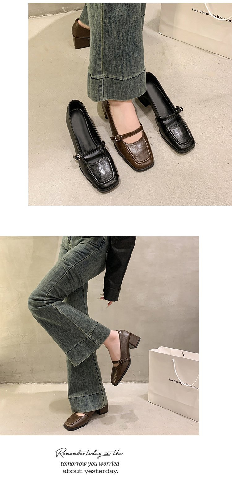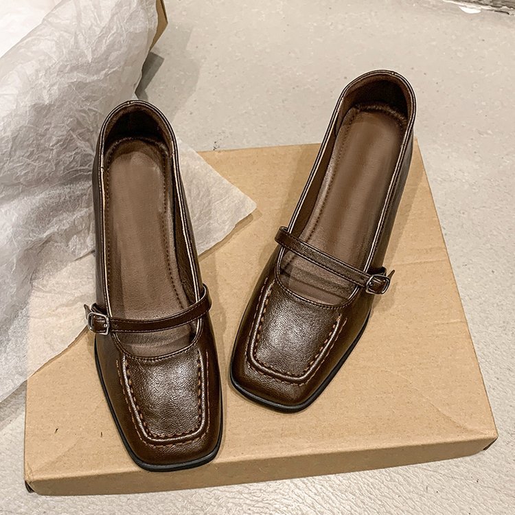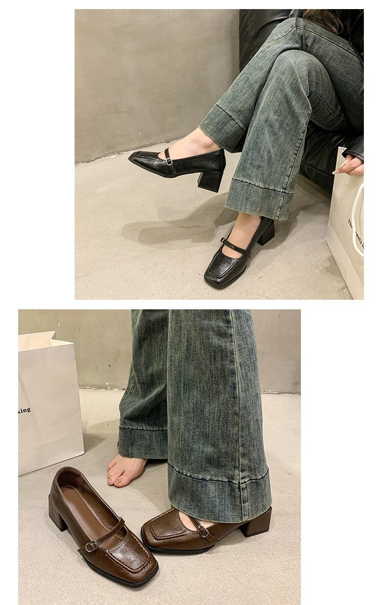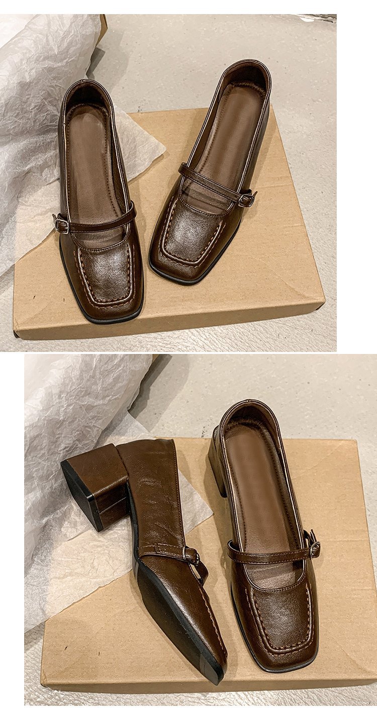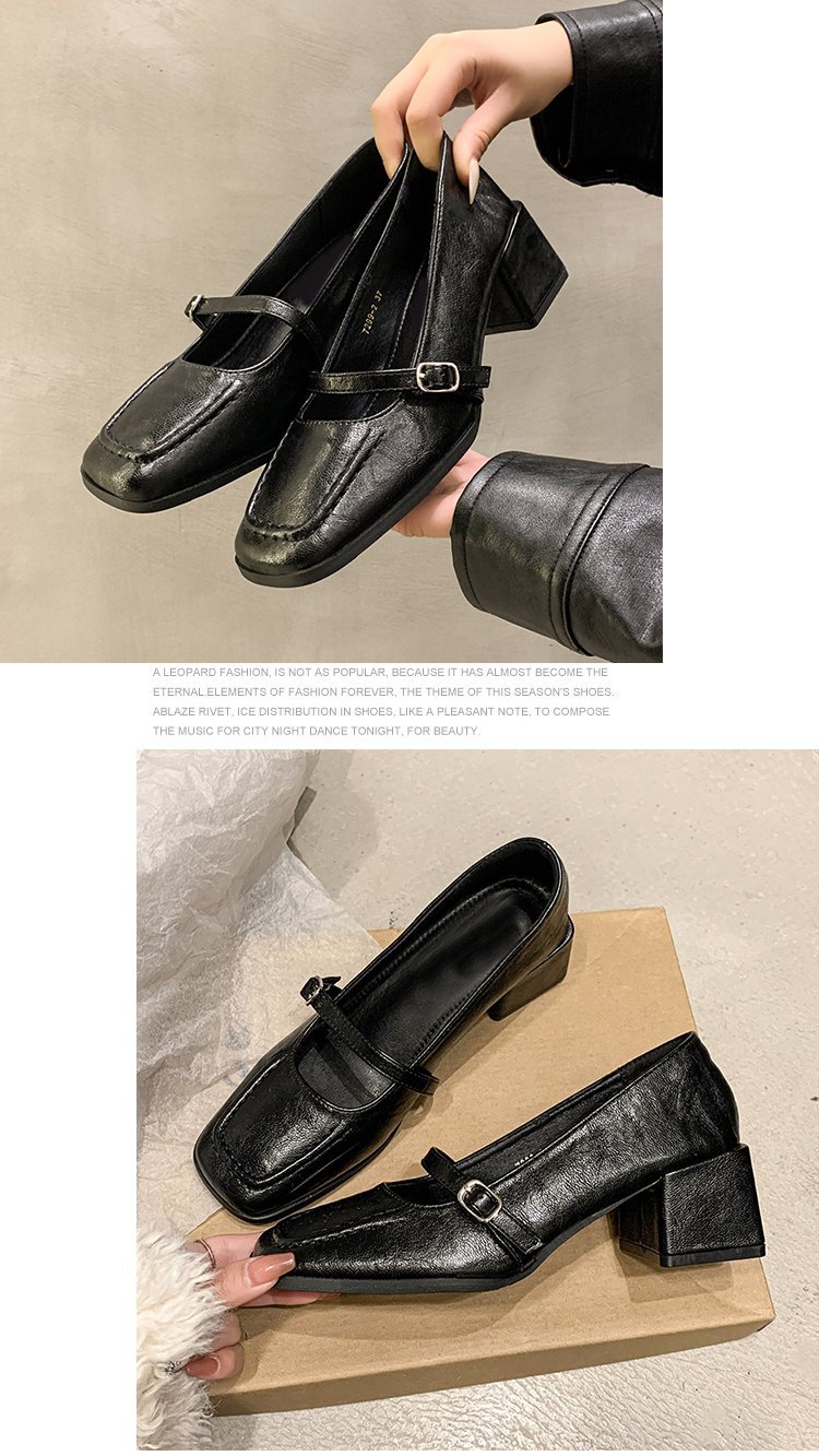 레트로 스퀘어 토 하이힐, 여성용 펌프스 슈즈, 봄 가을 신상 프렌치 스타일 이브닝 스타일 두꺼운 굽 메리제인 작은 가죽 신발스토어 가기
